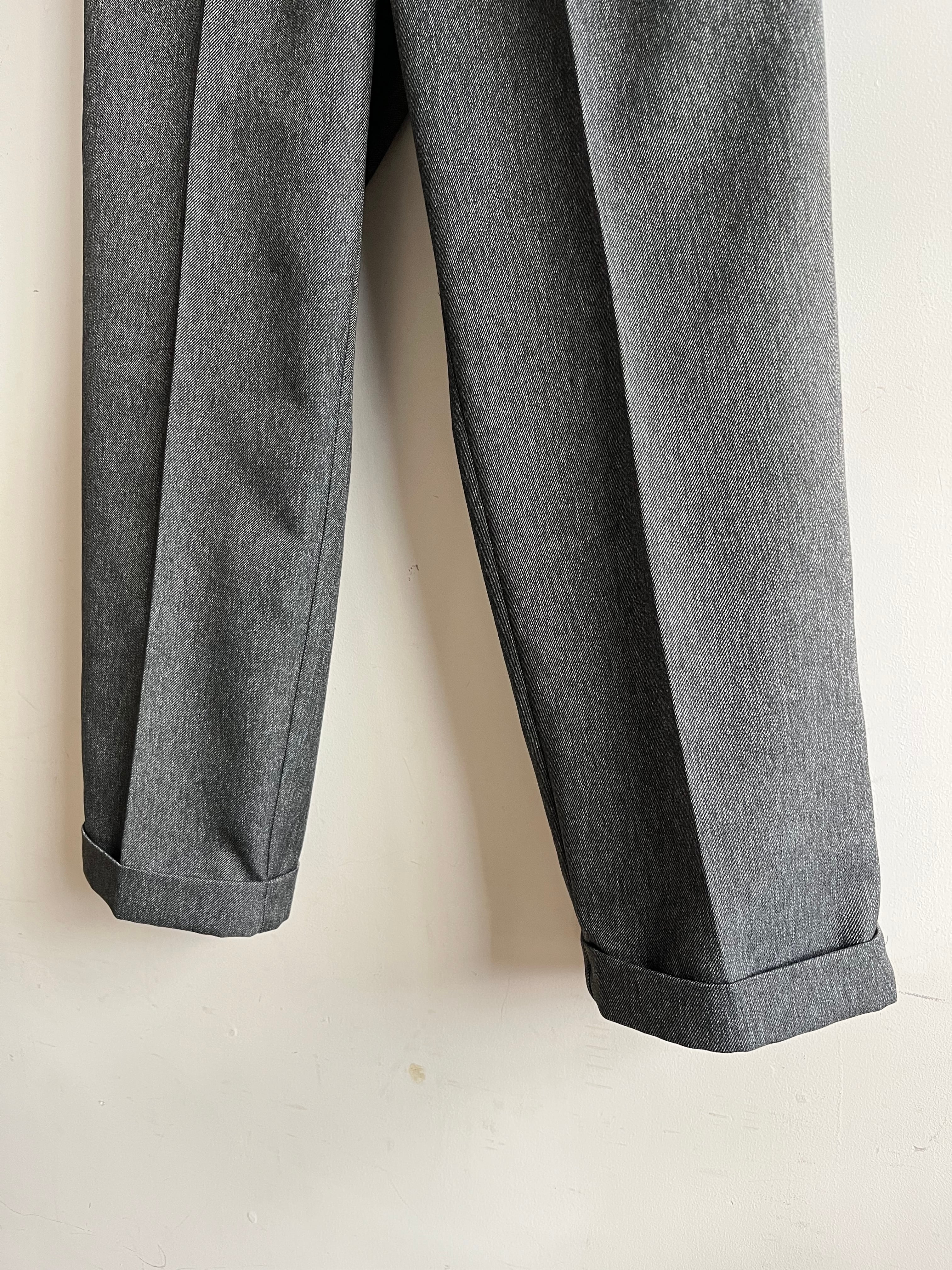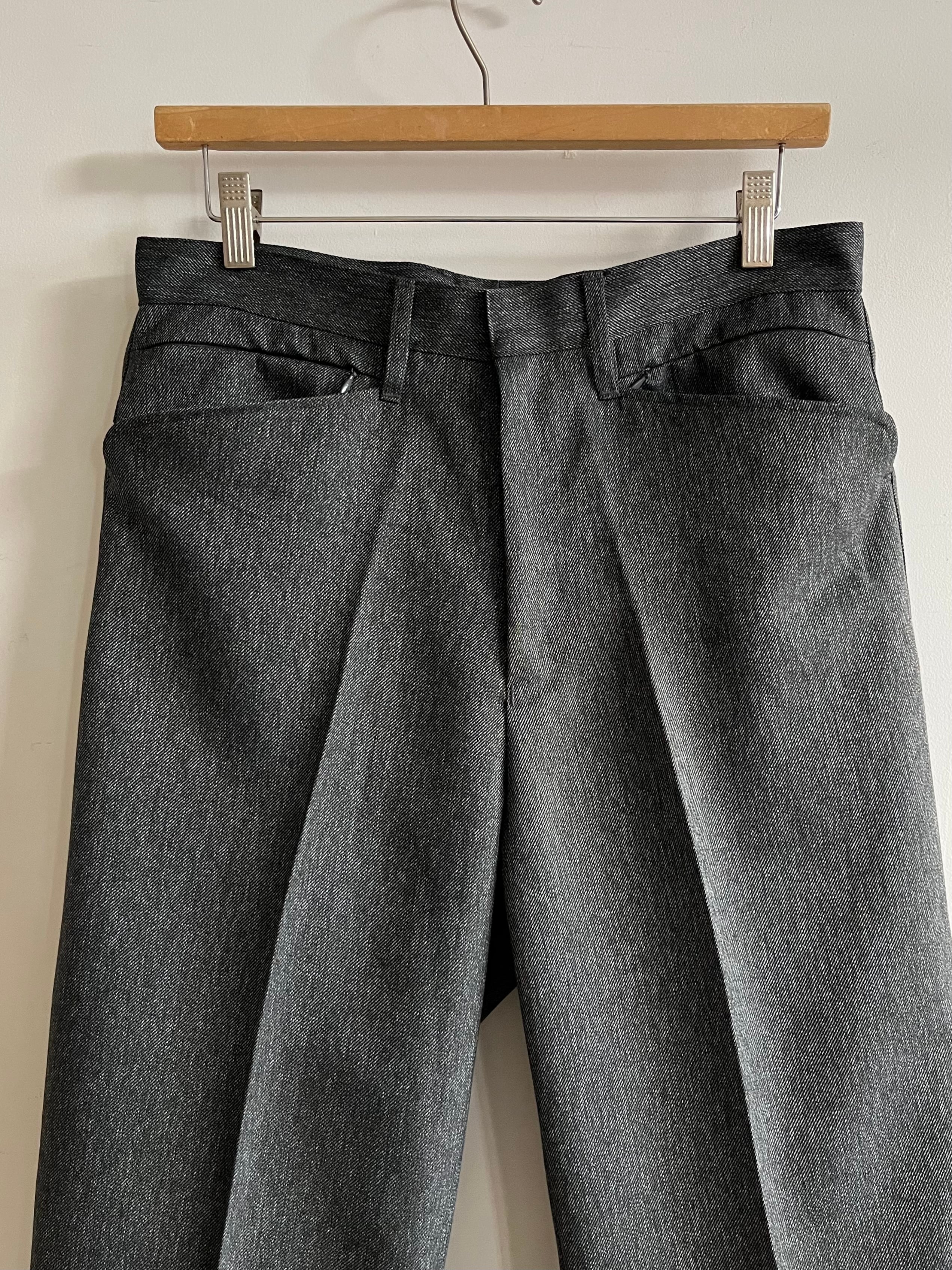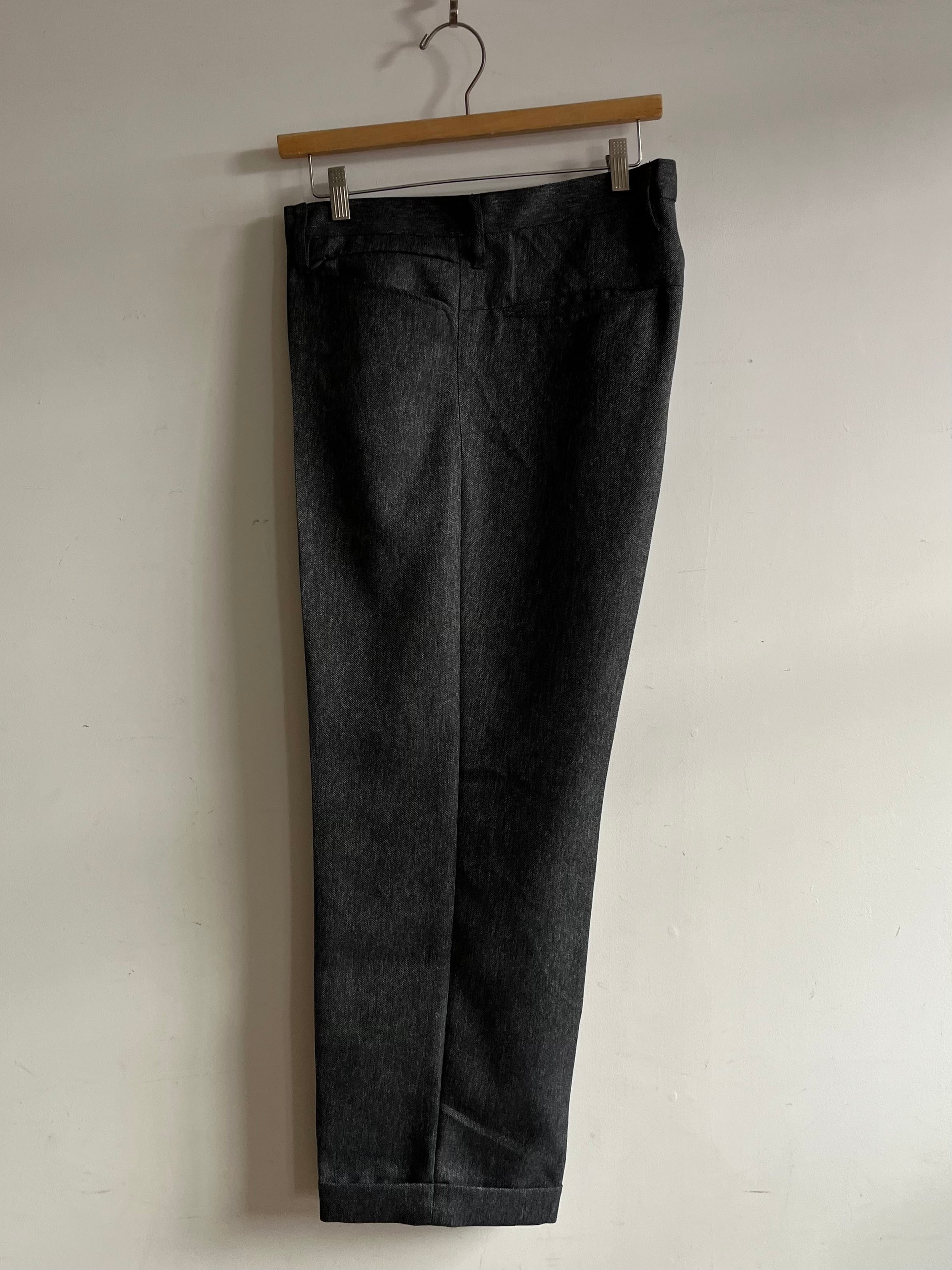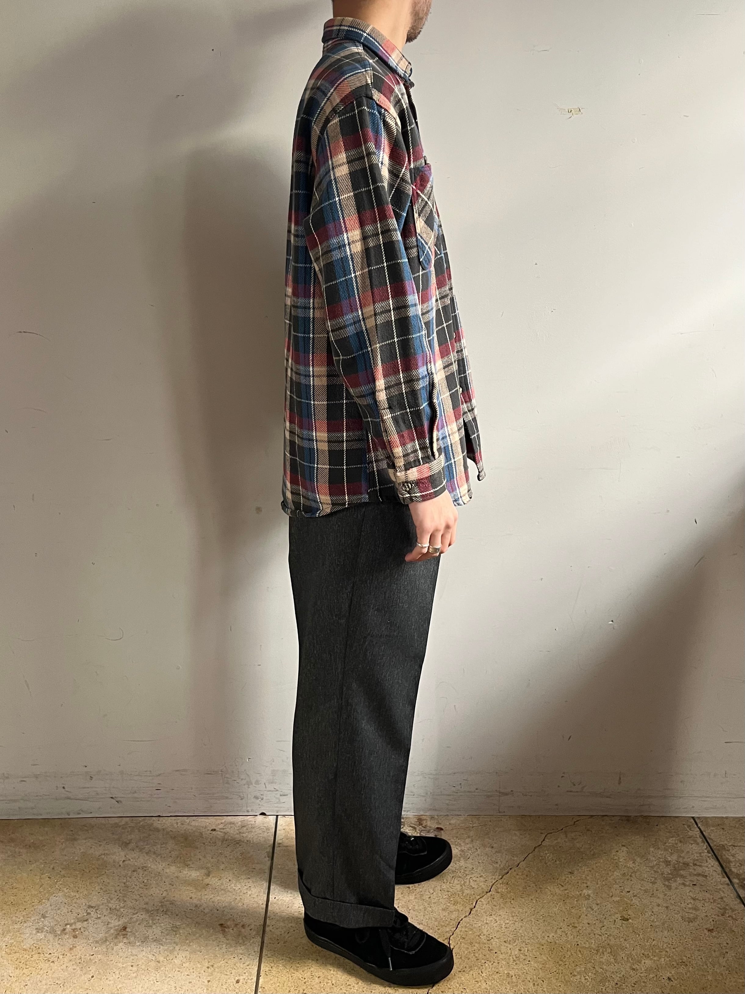 年代未確定、1990~2010年の間に製造されたとみられるポリエステル100%のツイード生地を使用。防シワ加工が施されておりイージーケア、雰囲気の良い縦に杢感の出た生地感です。