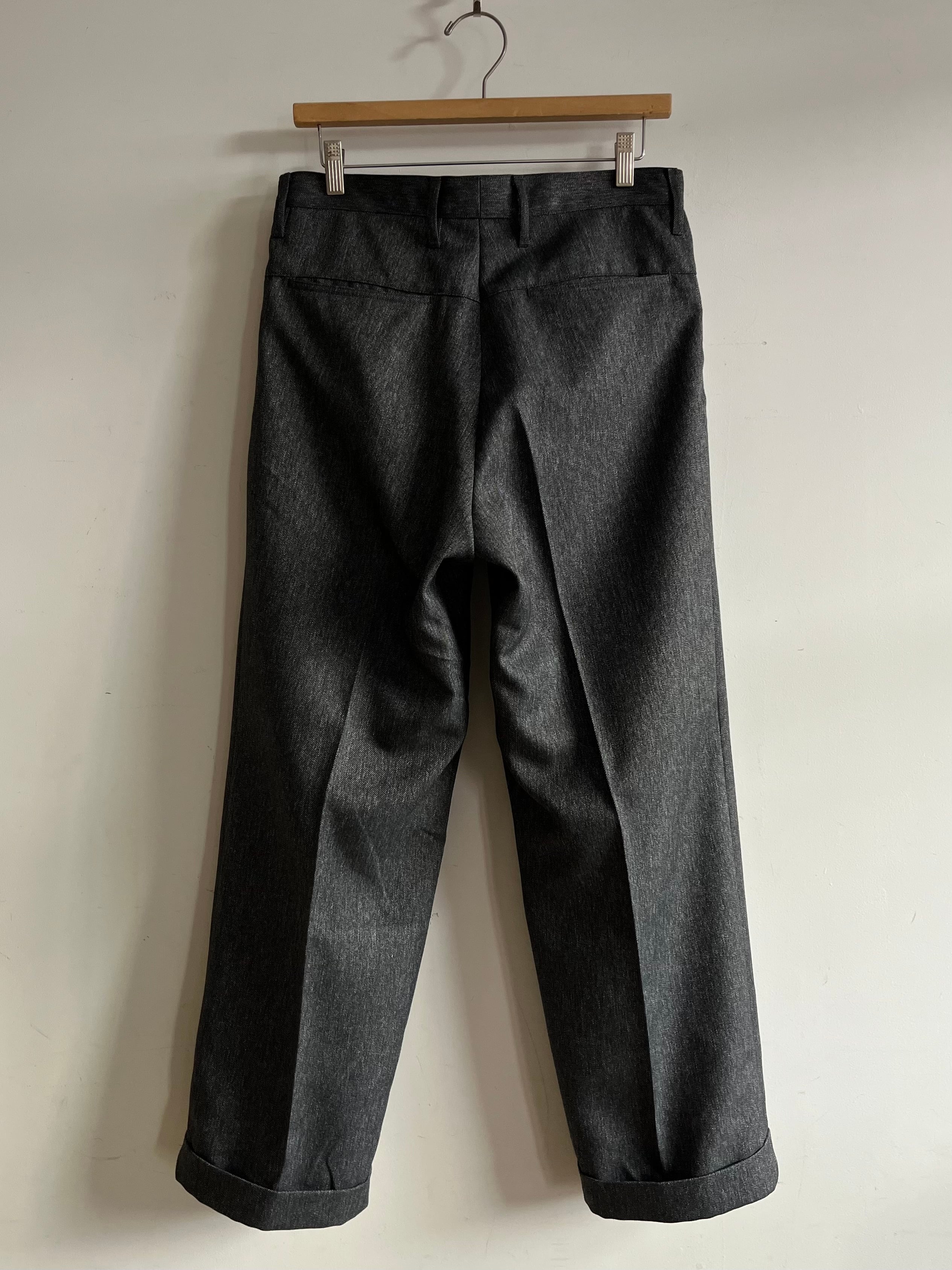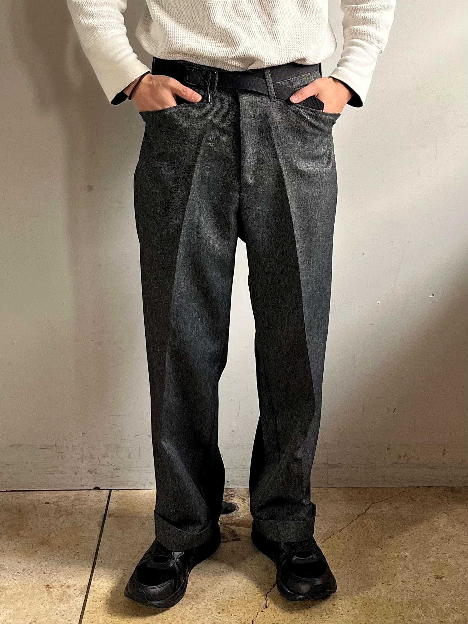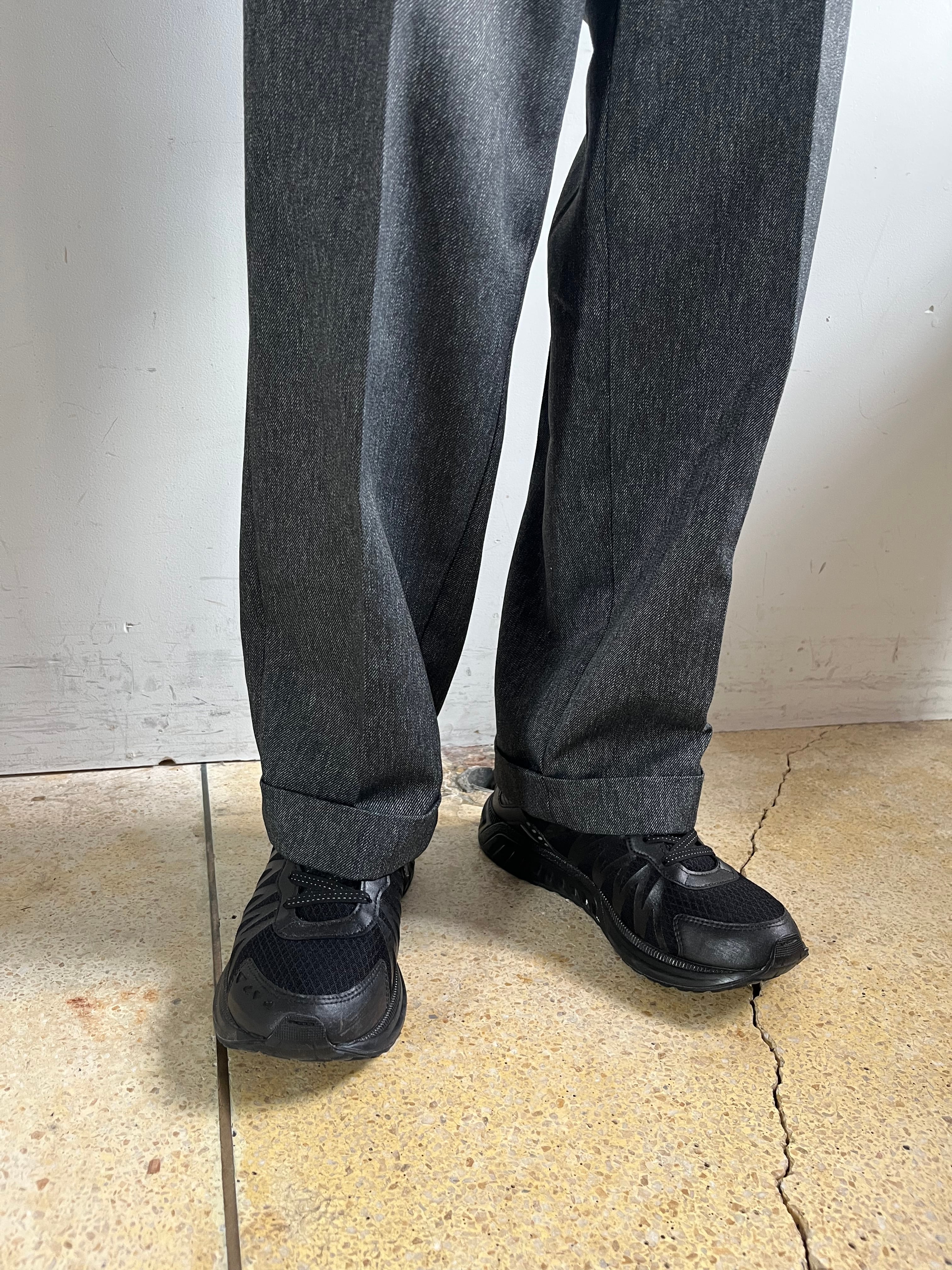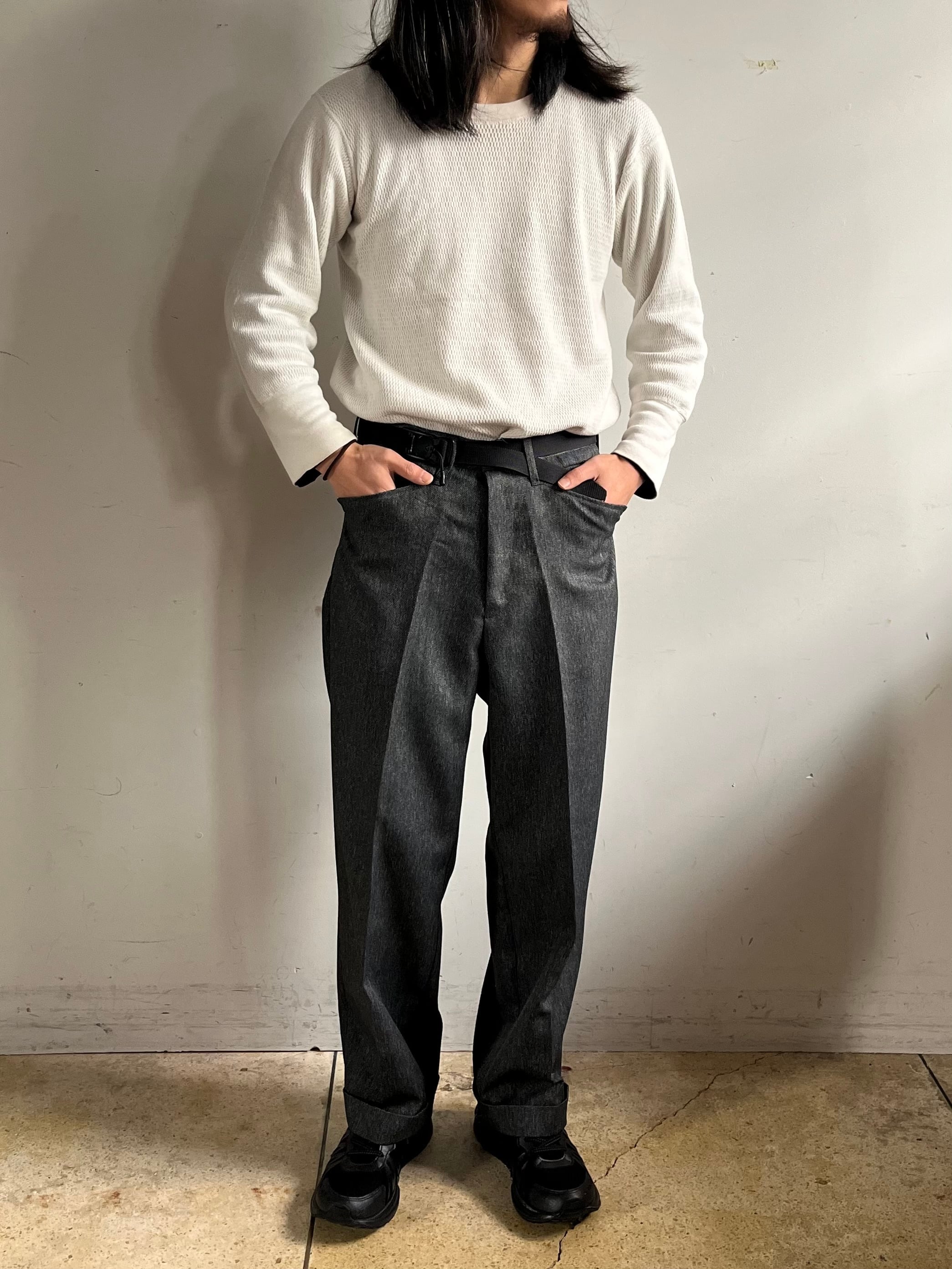 しっかりとクリースラインがプレスされておりシルエットが良くゆったりとしたサイズ感、裾はダブル仕様でドレッシーさも感じる一本。