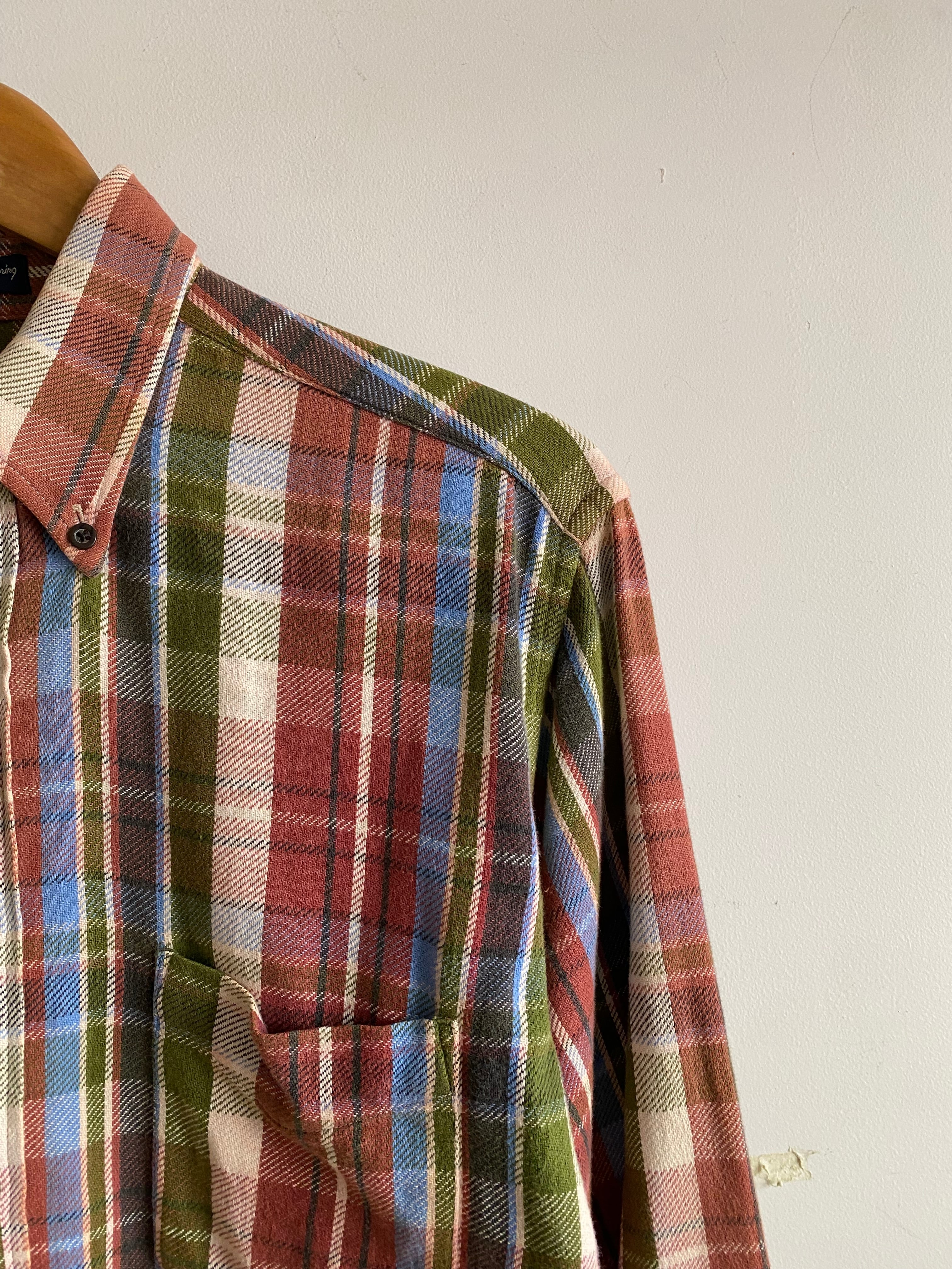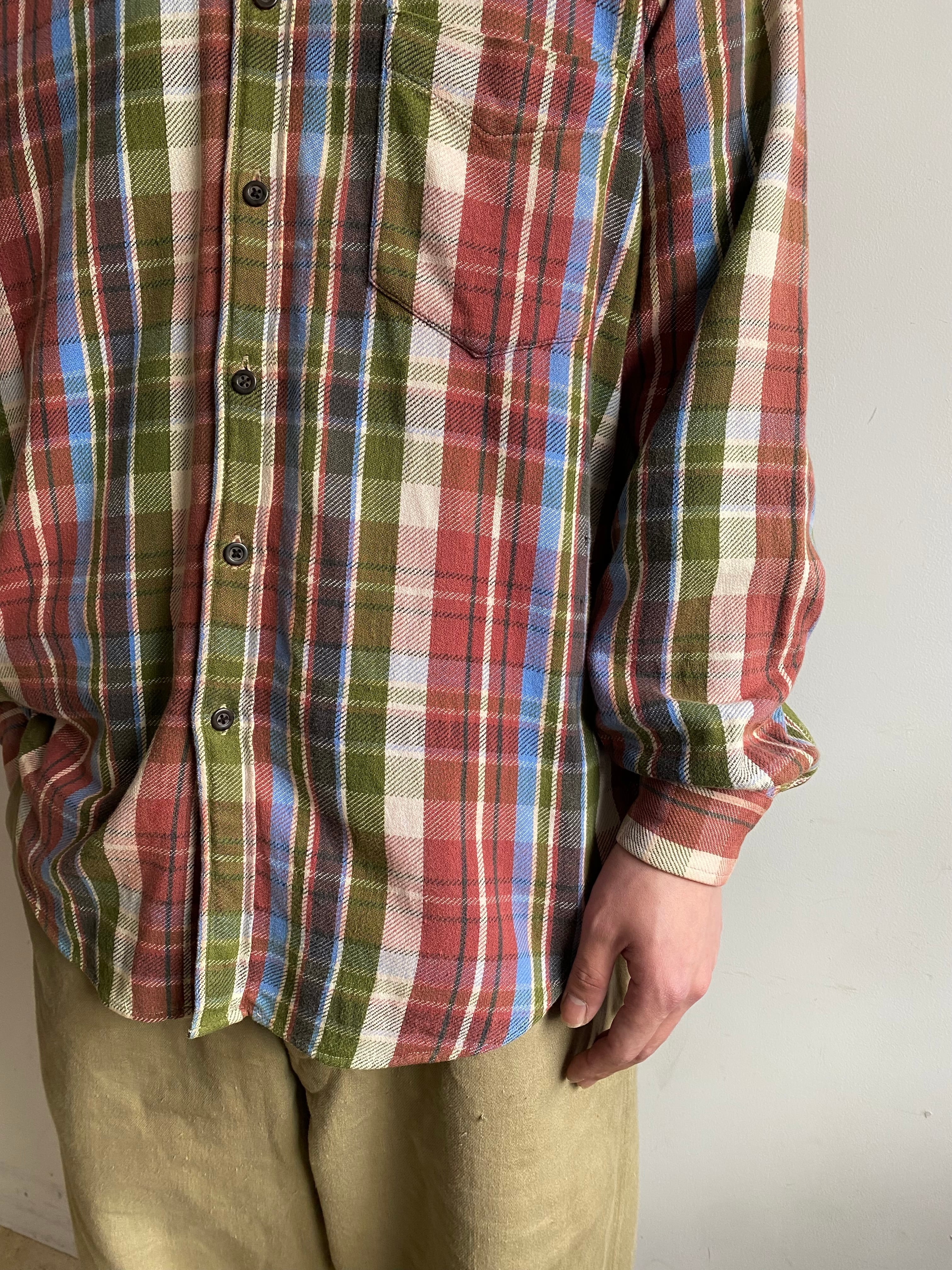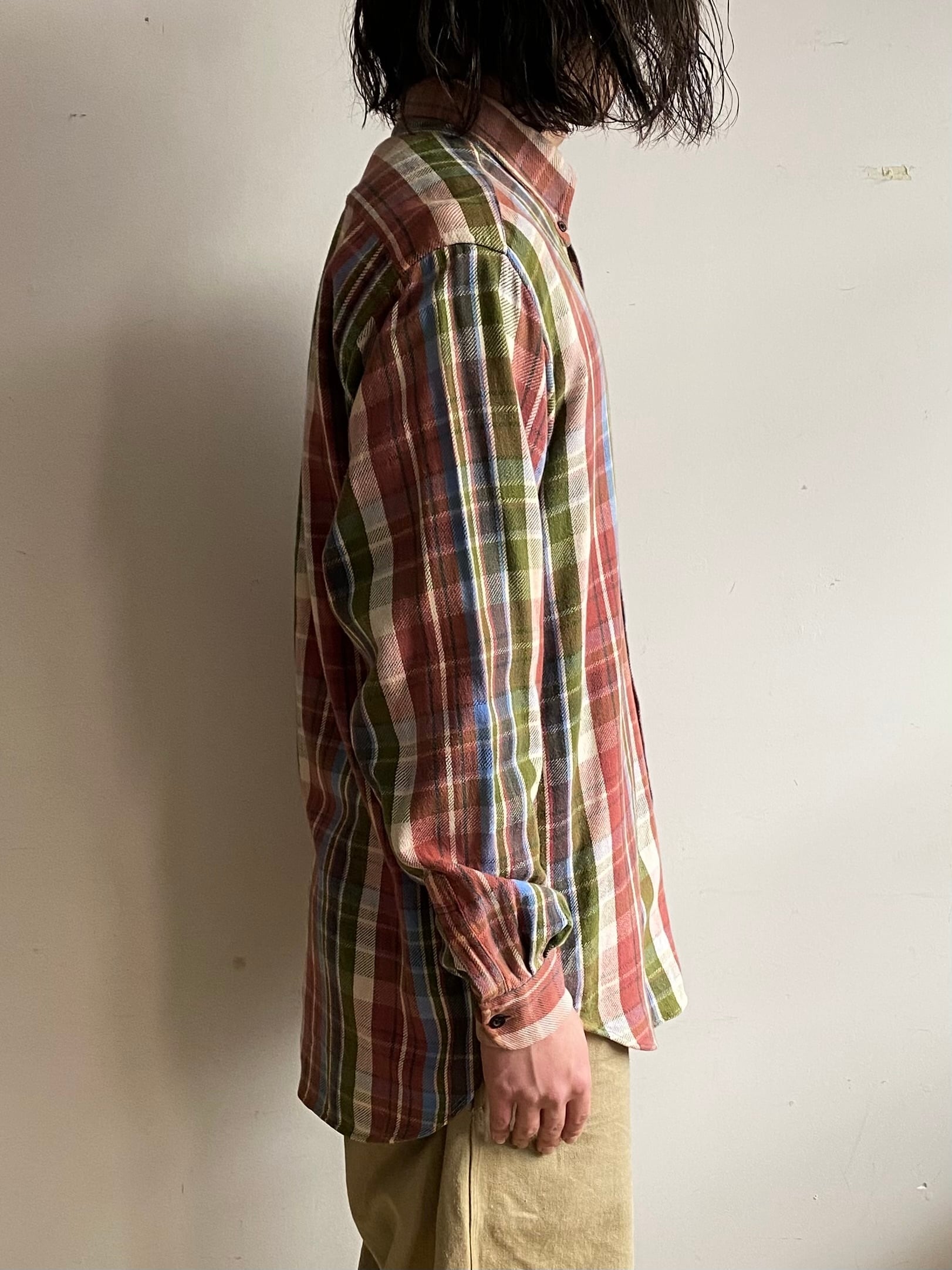 春らしいカラーリングのフランネルシャツ。