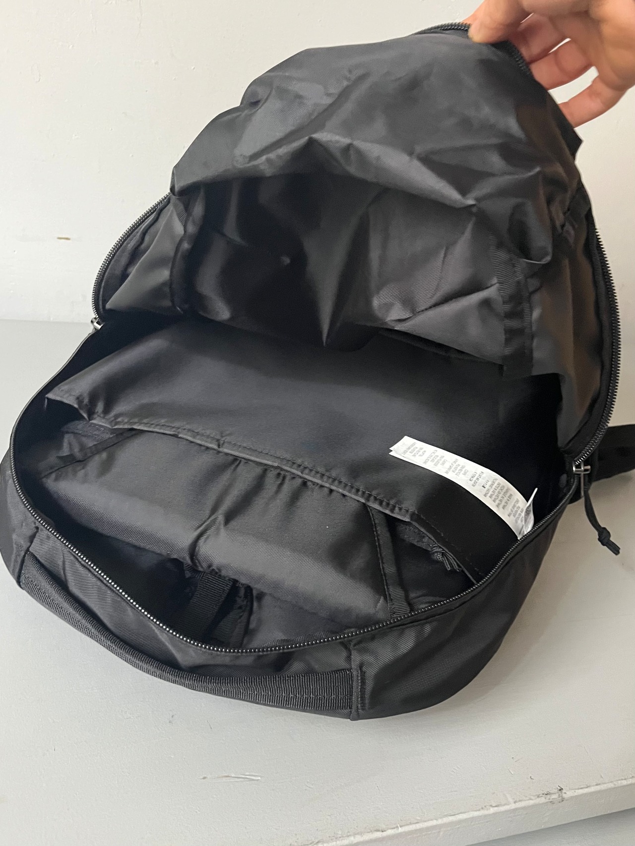小ぶりでありながらクッション性がありしっかりとフィットするショルダーハーネス、自立しやすい底面、13インチまでラップトップが収納できる着脱可能なPCスリーブが付属。