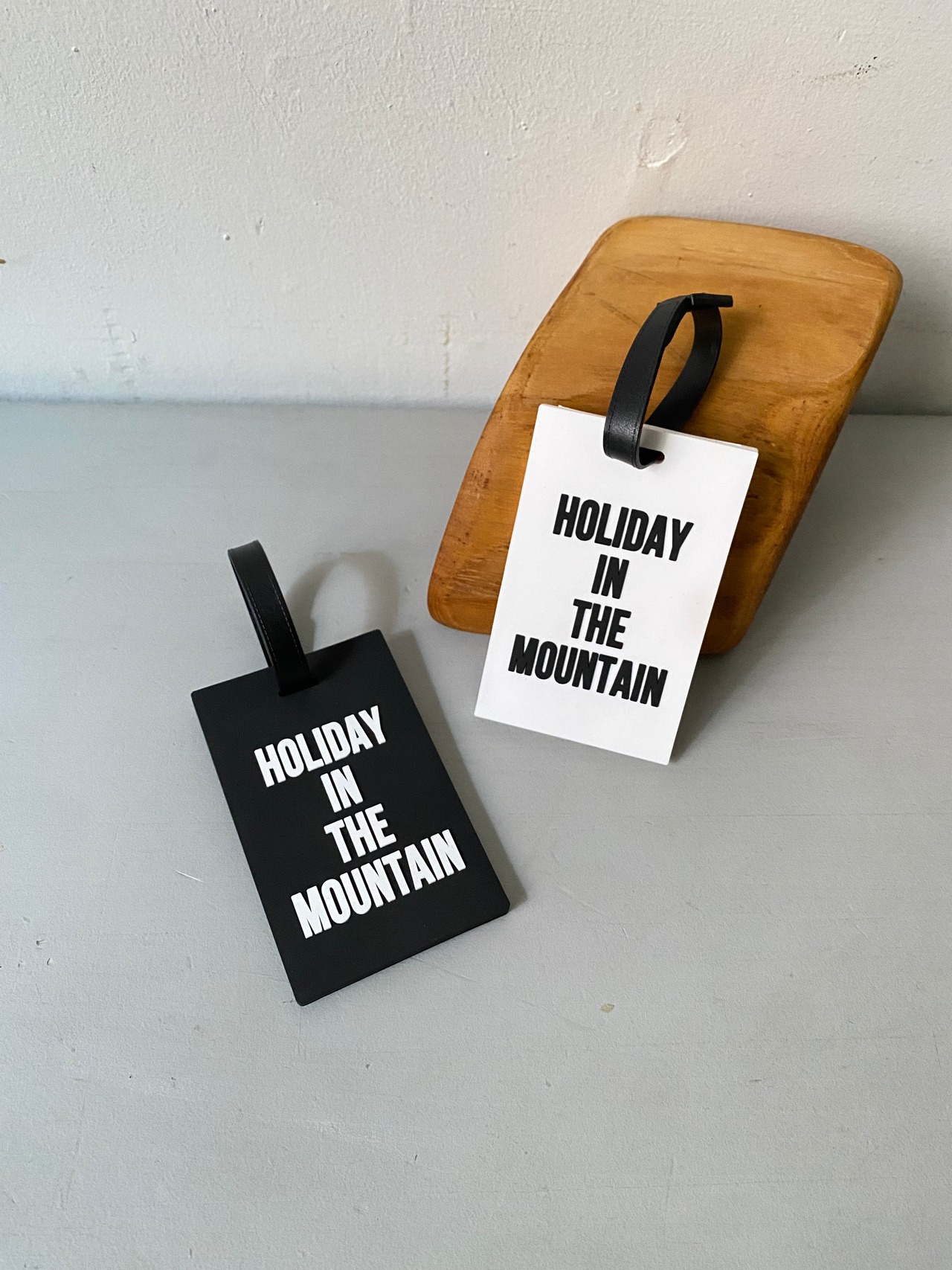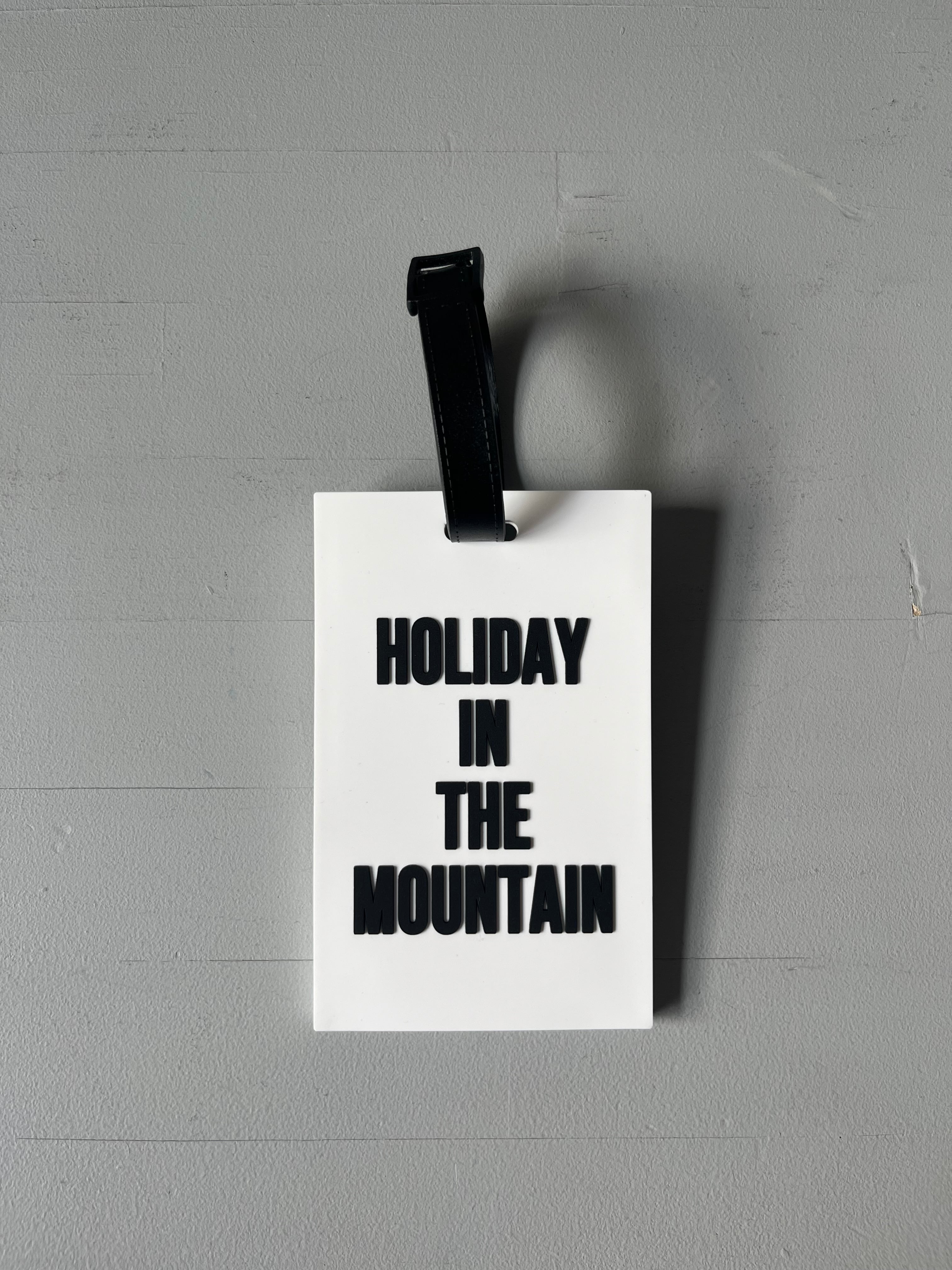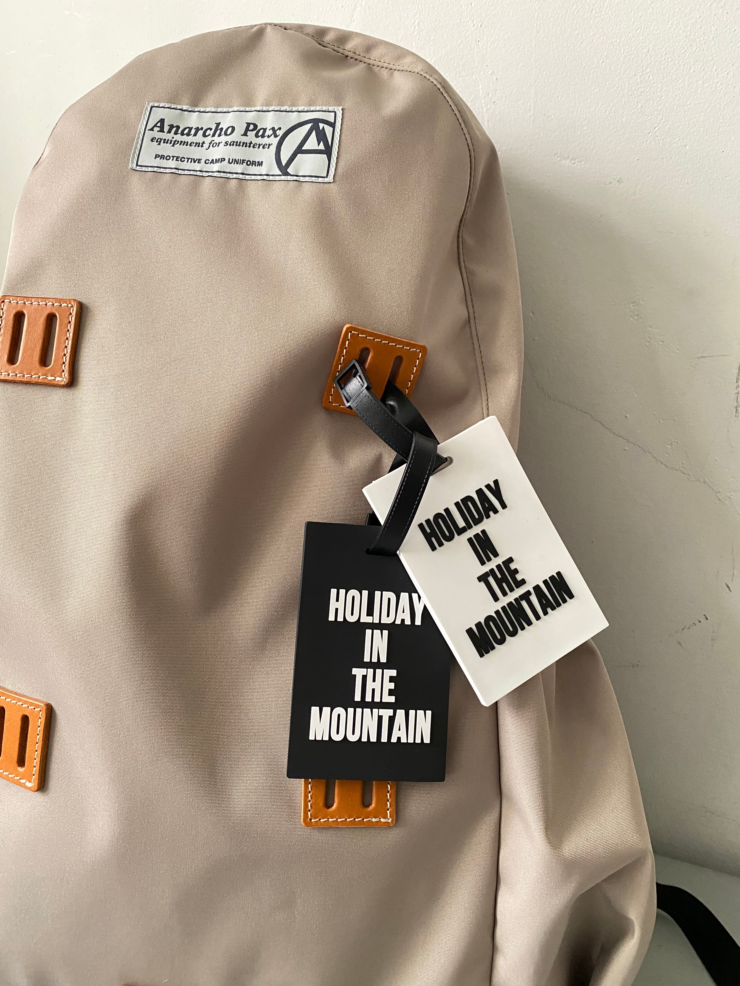 前面にはブランドのスローガンの一つ"HOLIDAY IN THE MOUNTAIN"が立体的なエンボスで模られております。