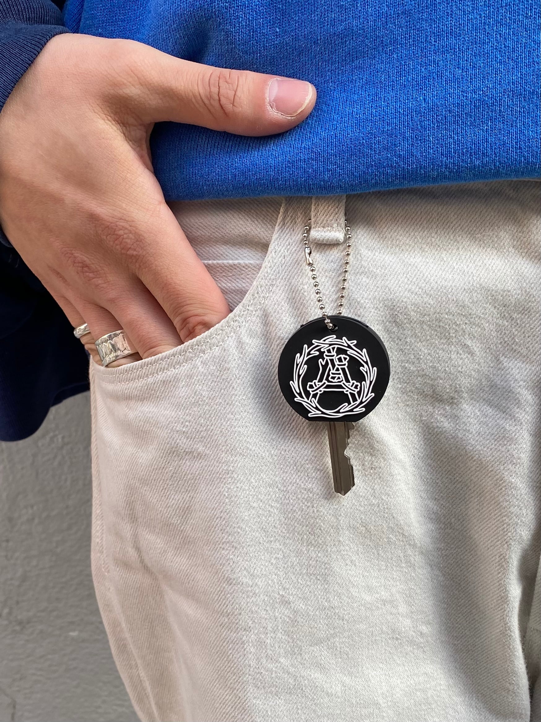 ブランドアイコンの一つ「”A"リースマーク」を模ったキーケース。