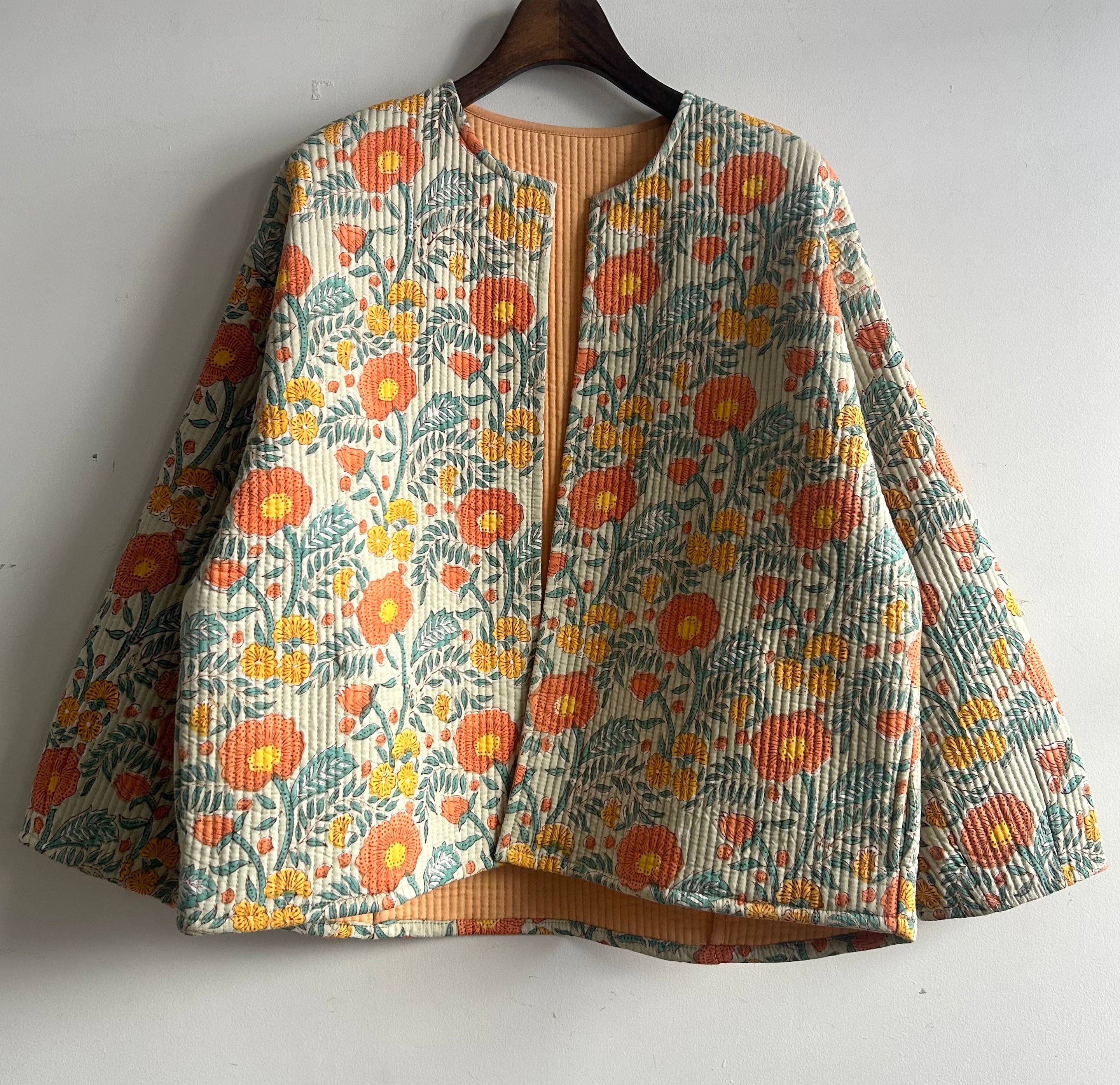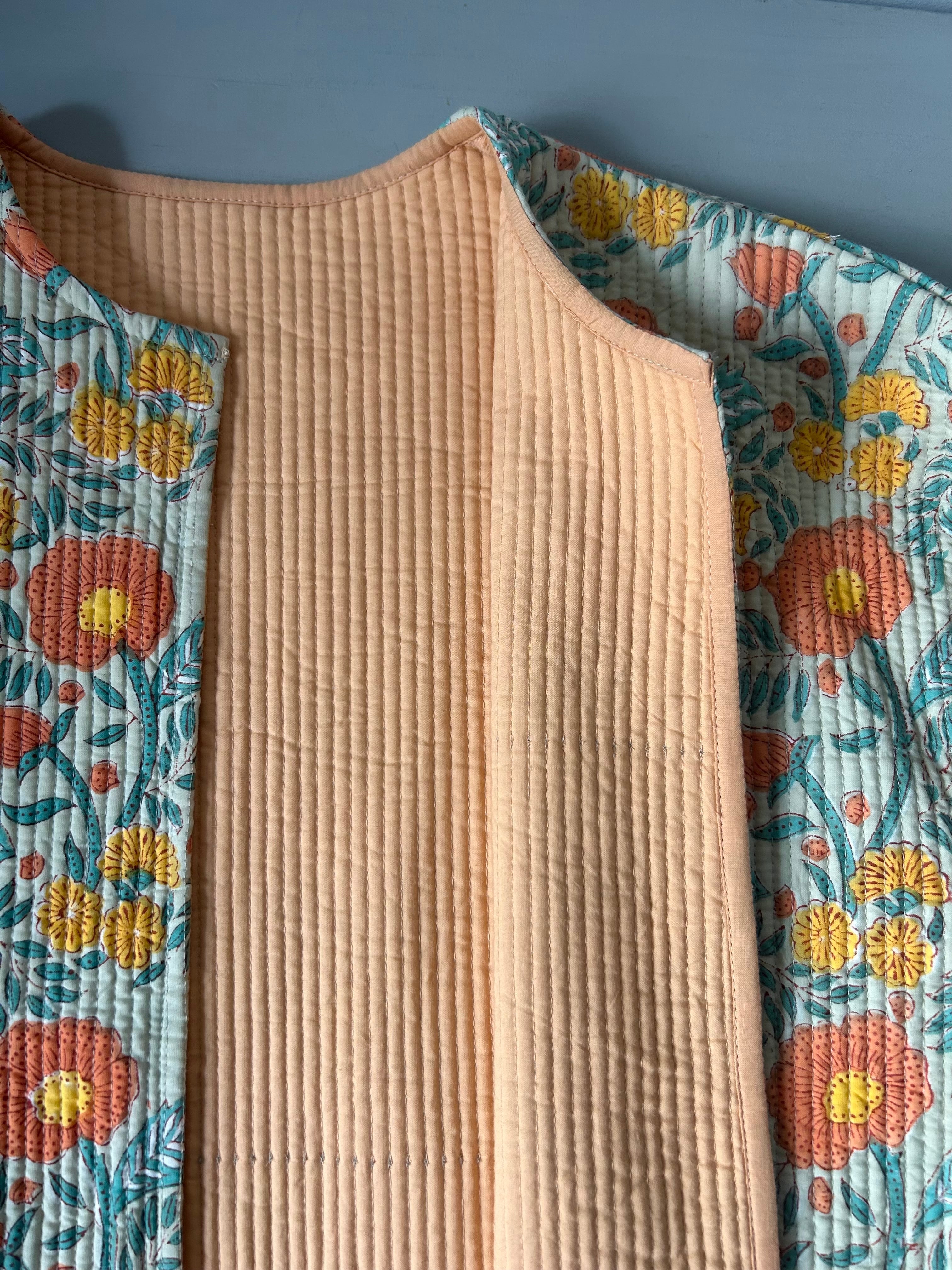 肌寒さが残る春先にふわりと羽織れる薄手のコットンキルトジャケット。