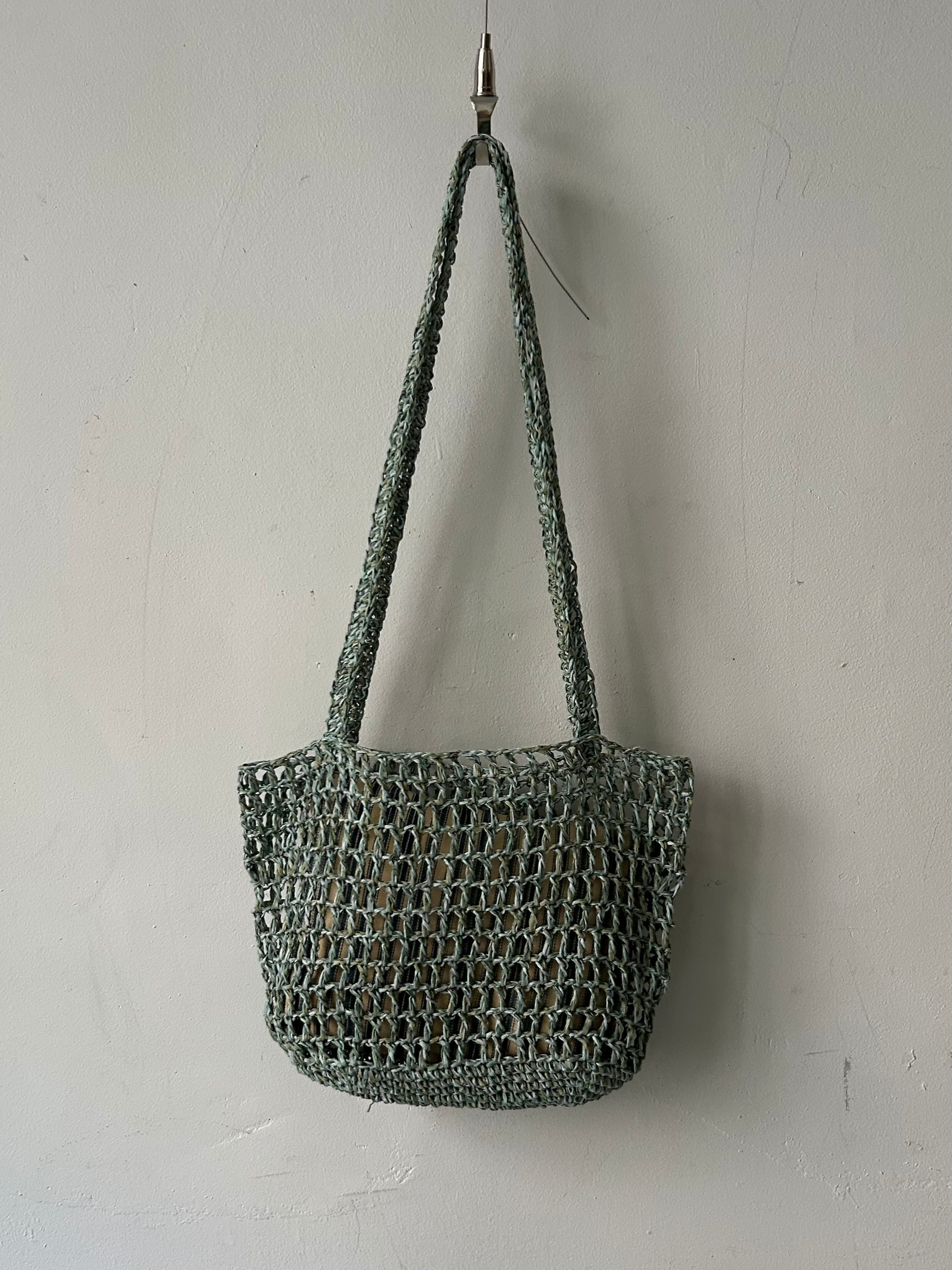 4色のペーパーをミックスして編み込んだミニトートバッグ。