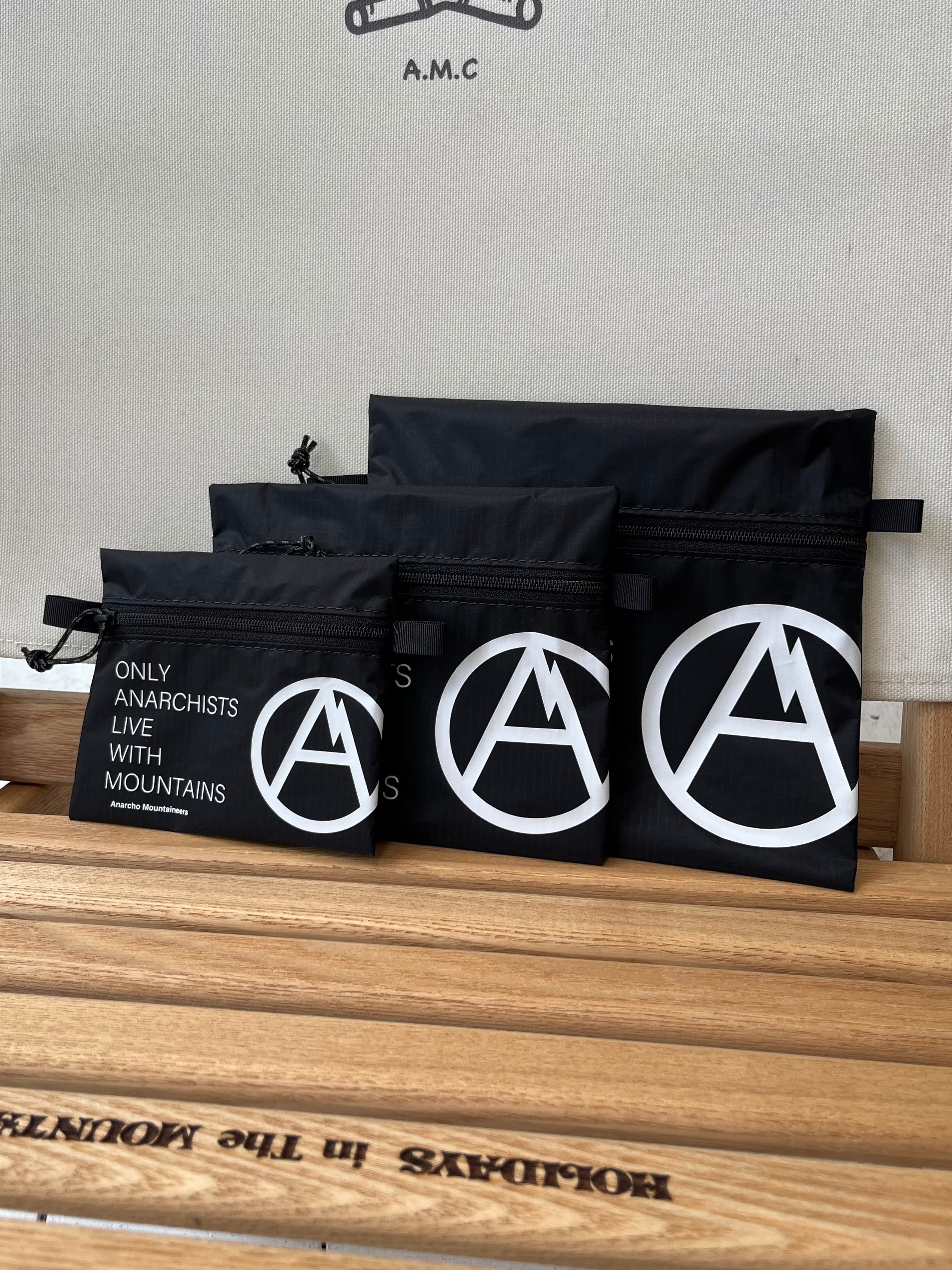 大・中・小の3サイズ入り、ブランドスローガンの一つ「ONLY ANARCHIESTS LIVE WITH MOUNTAIN」ロゴ入り。