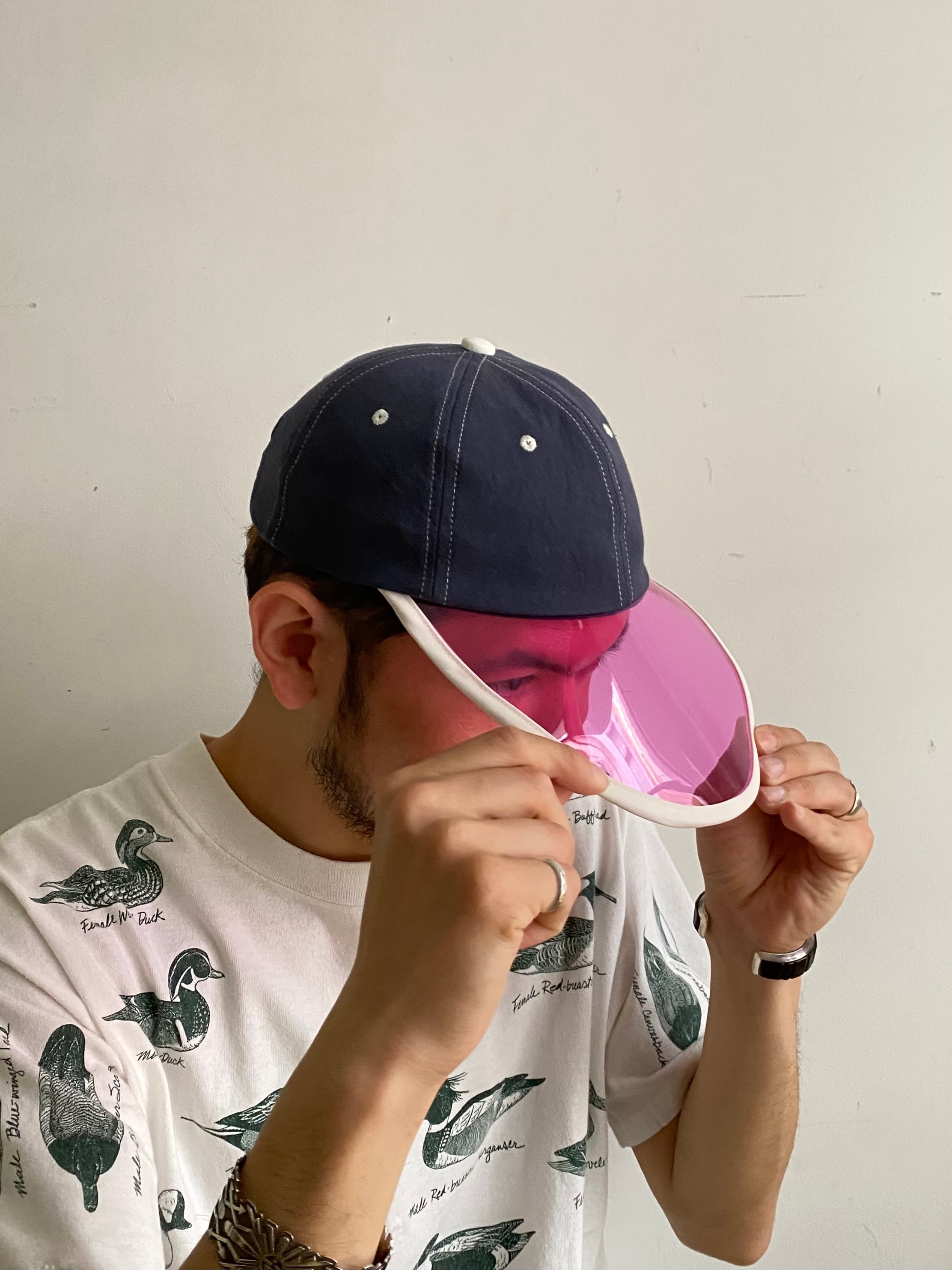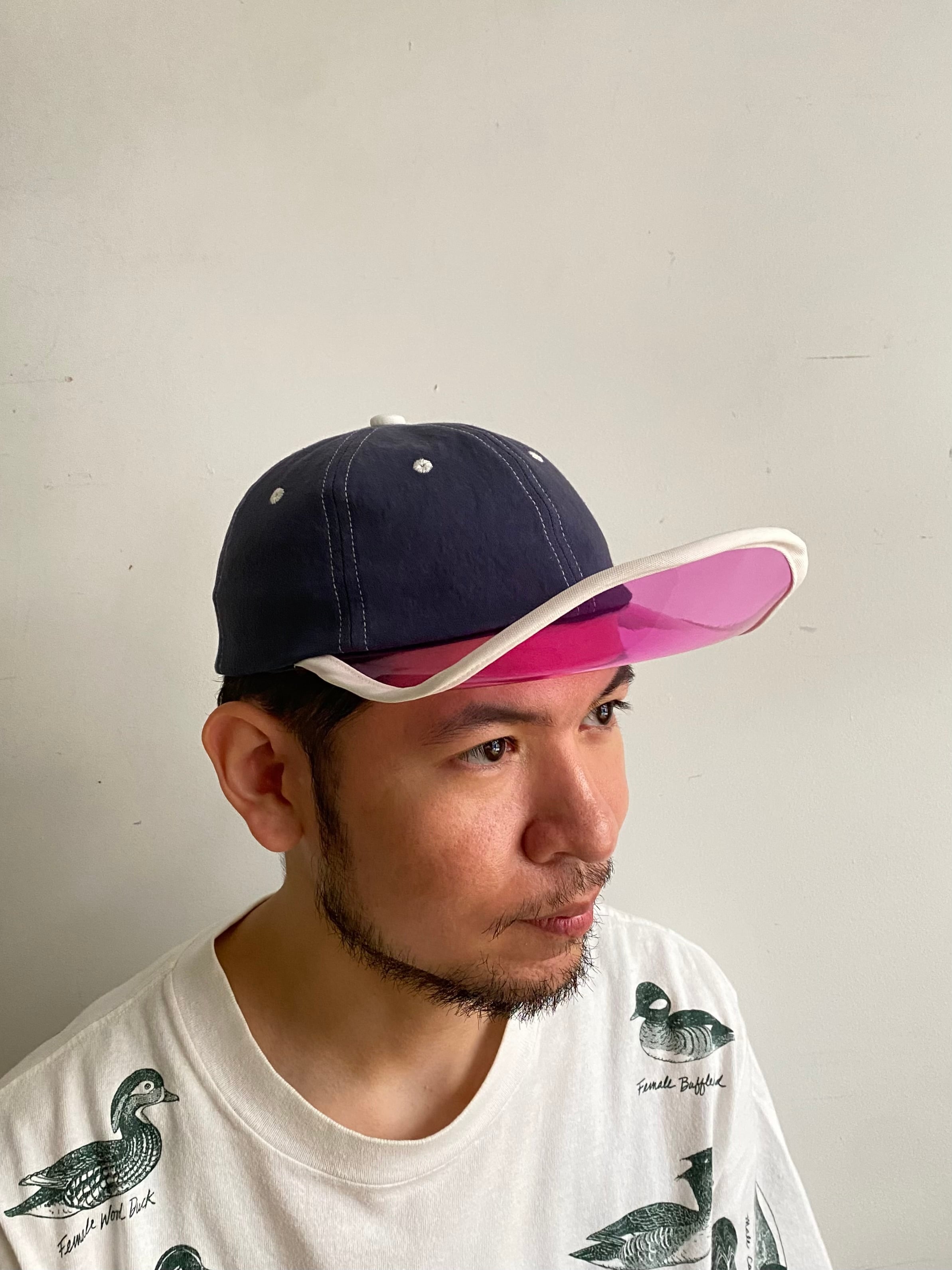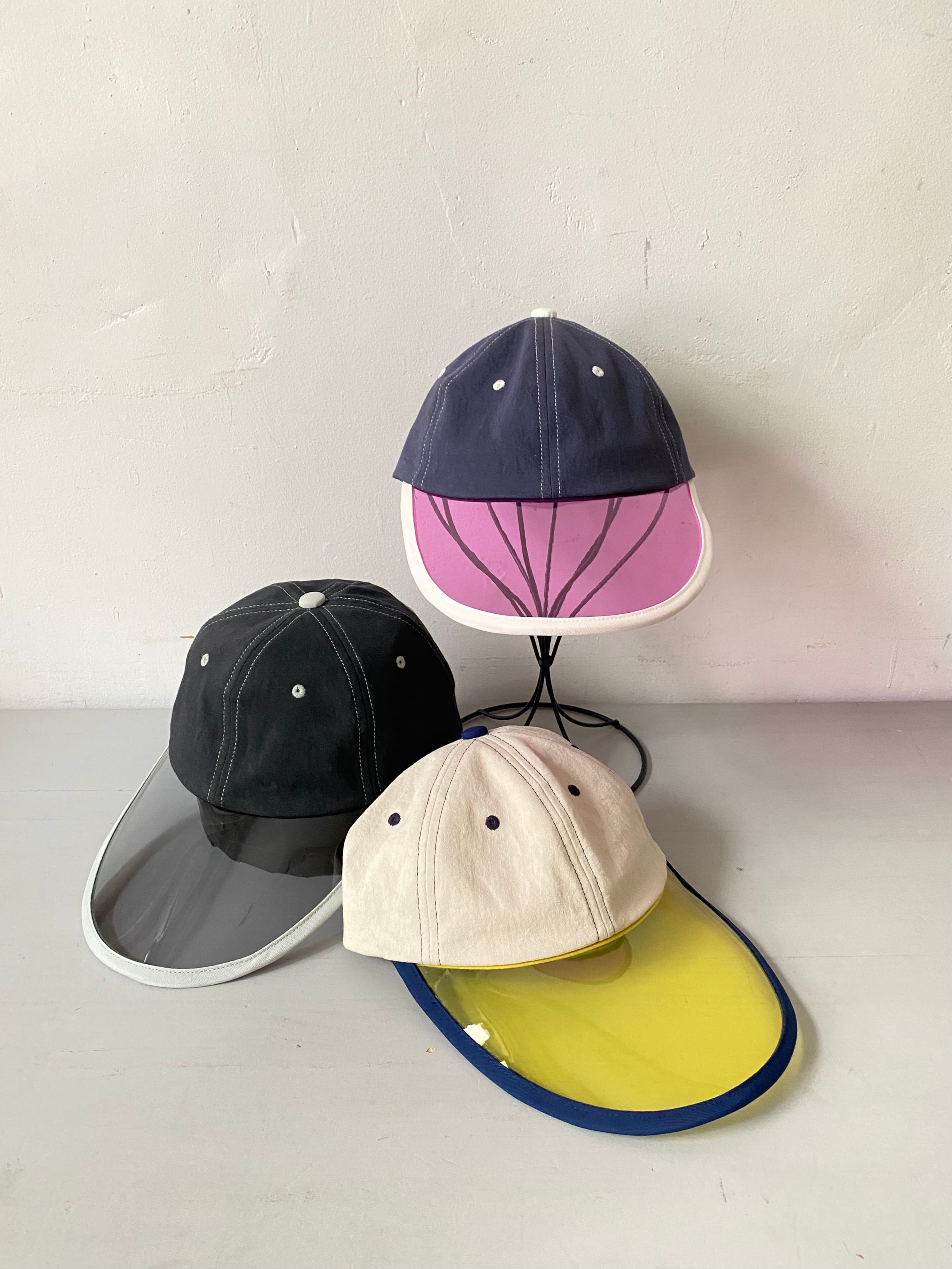 遊び心のあるクリアブリムが目を引くロークラウンのデザインキャップ。