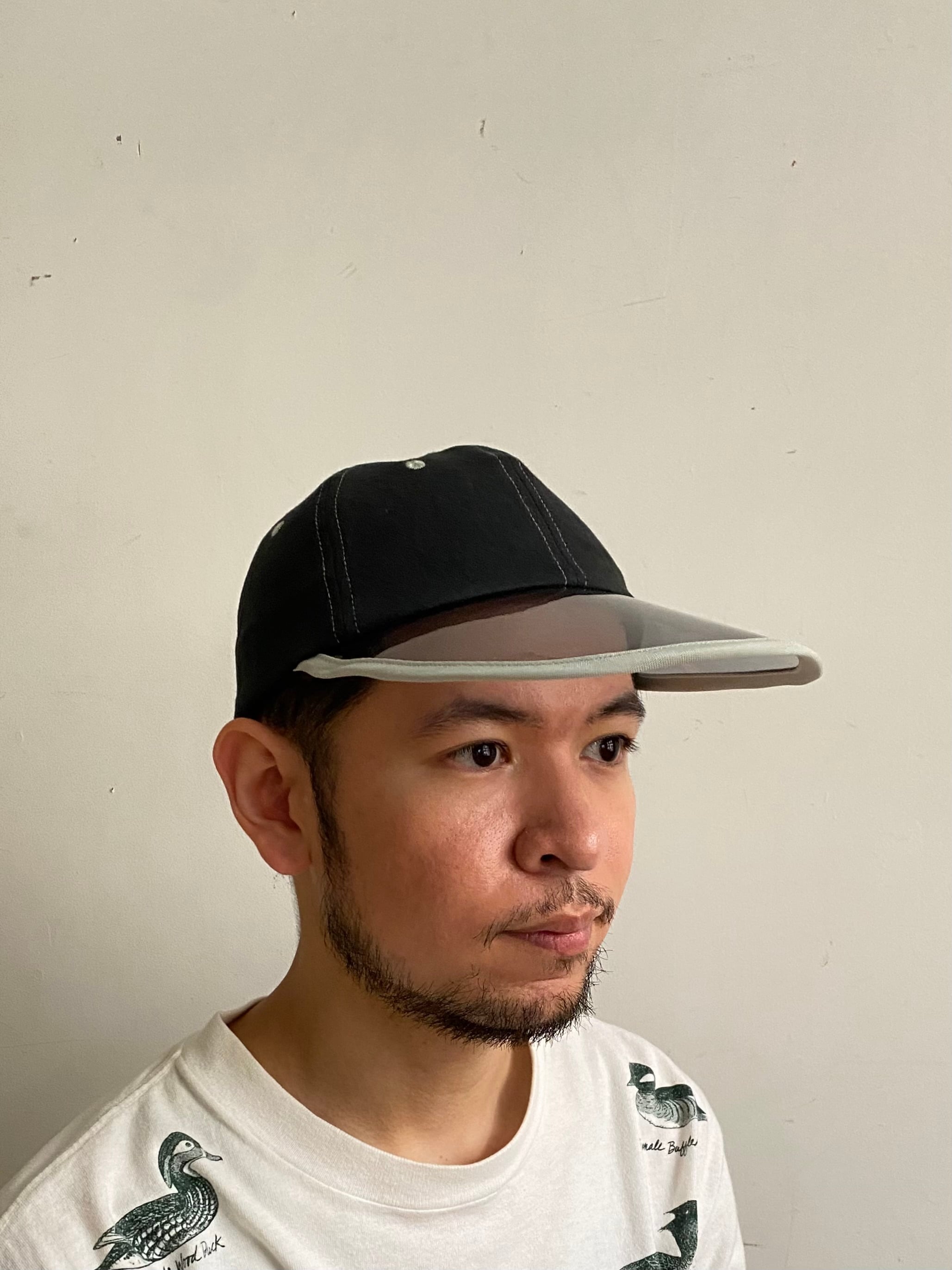 つばにはPVCのクリア素材を使用しており、くるっと曲げたりフラットにしたりと自由にアレンジ可能。