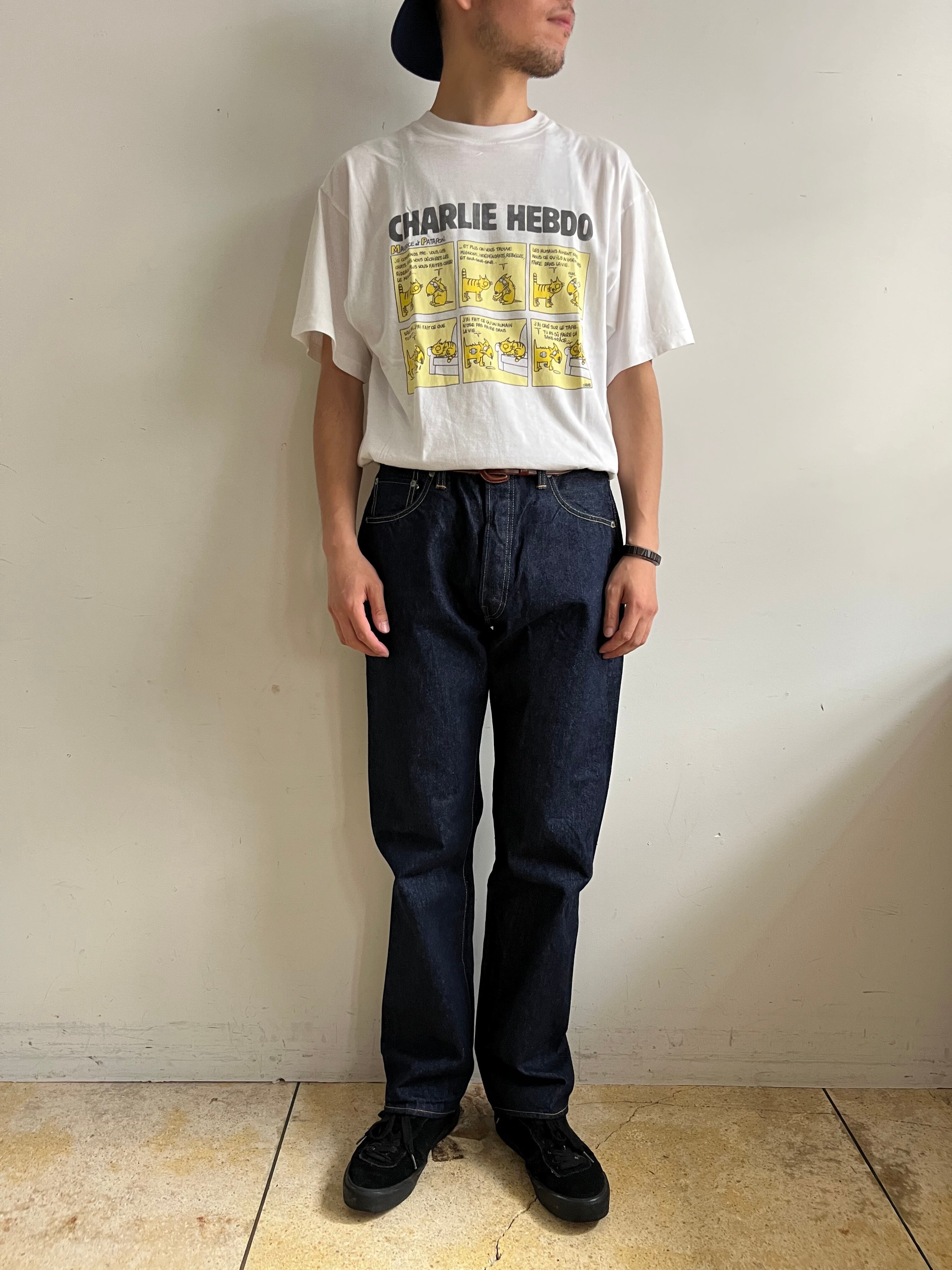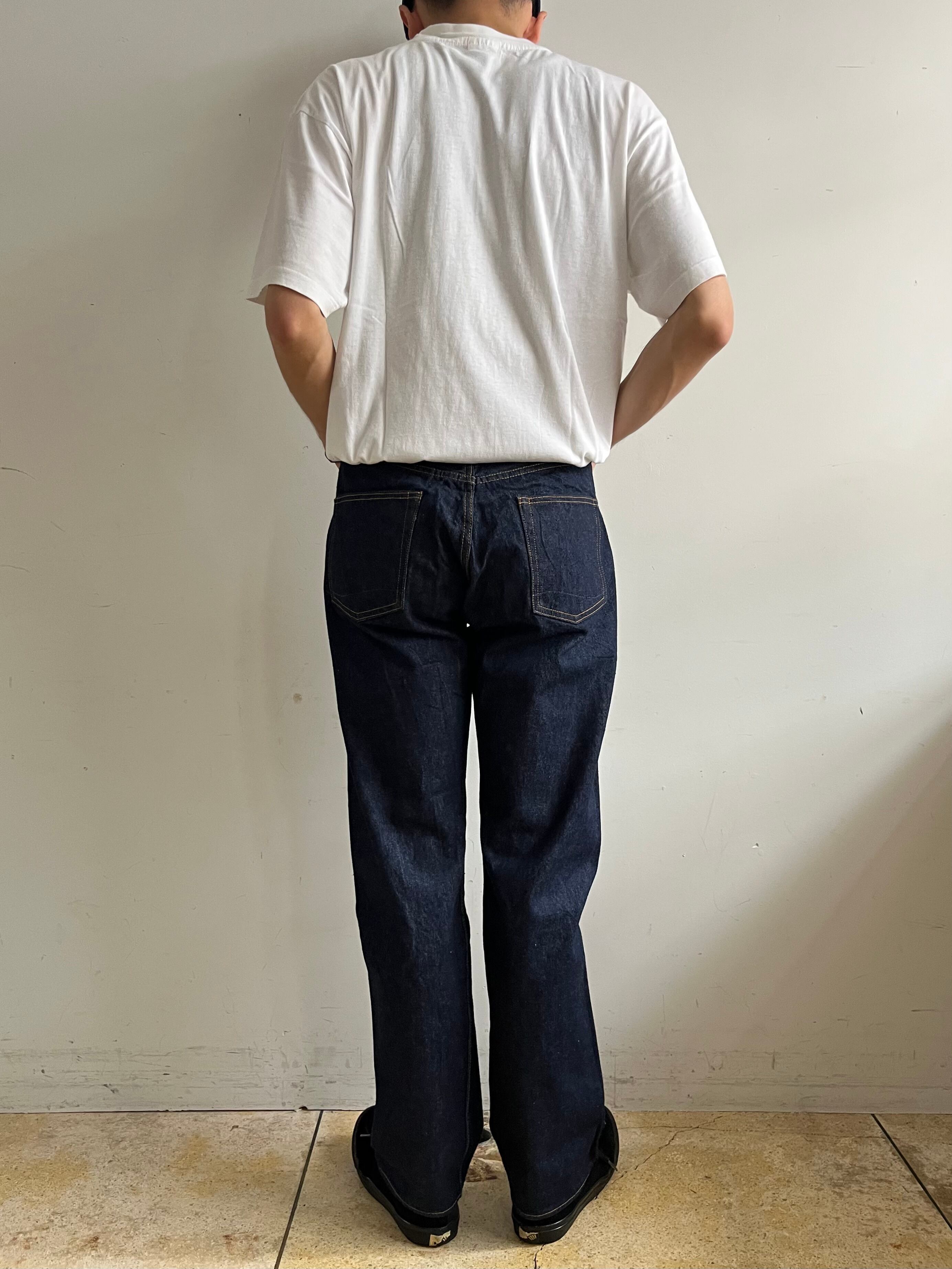 素材はヴィンテージデニムなどを研究し、同ブランドがオリジナルで開発した14.3オンスのセルビッジデニムを使用。ワンウォッシュされたデニムの表面はムラ感と凹凸があり、着用を続けることで雰囲気の良いヴィンテージライクな独特の色落ちを楽しむことが出来ます。その他にも、あえてメッキを掛けないことで現れているリベットの錆び、前後ポケットの形状、縫製に使用する糸の色や太さ、紙パッチなど様々な趣向が詰め込まれたオアスロウのフラッグシップモデルに相応しい一本です。形は太すぎず、細すぎないストレート型で様々なスタイルに合わせやすい着回しの良いシルエットです。