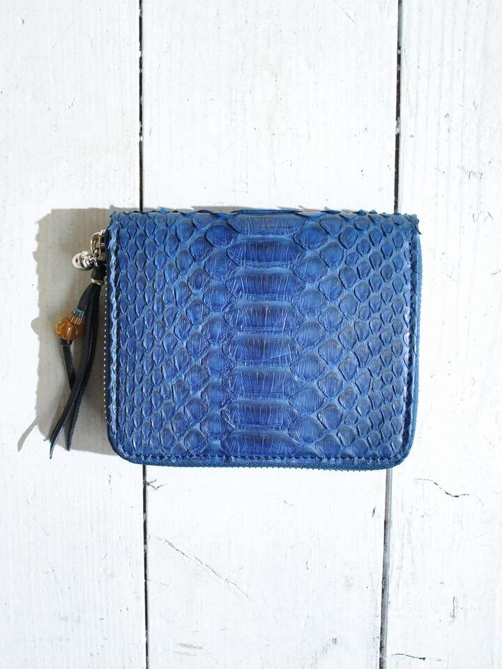 美しいウロコが特徴のパイソンウォレット。 非常に丈夫な革質で、天然の阿波正藍によって染め上げられた表面はとても魅力的です。