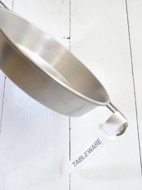 アナルコボウルに続く"両持ち手食器"のバリエーション。"ボウル"よりも広く浅めに設計されたプレート型です。平たくシェイプされながらも、直径20cm、1000mlと申し分ない容量。お皿としてはもちろん、フライパン使いにもオススメな一品です。こちらも、山での調理派の方々に大変オススメです。"へら絞り"によるステンレス製。MADE IN TOKYO
