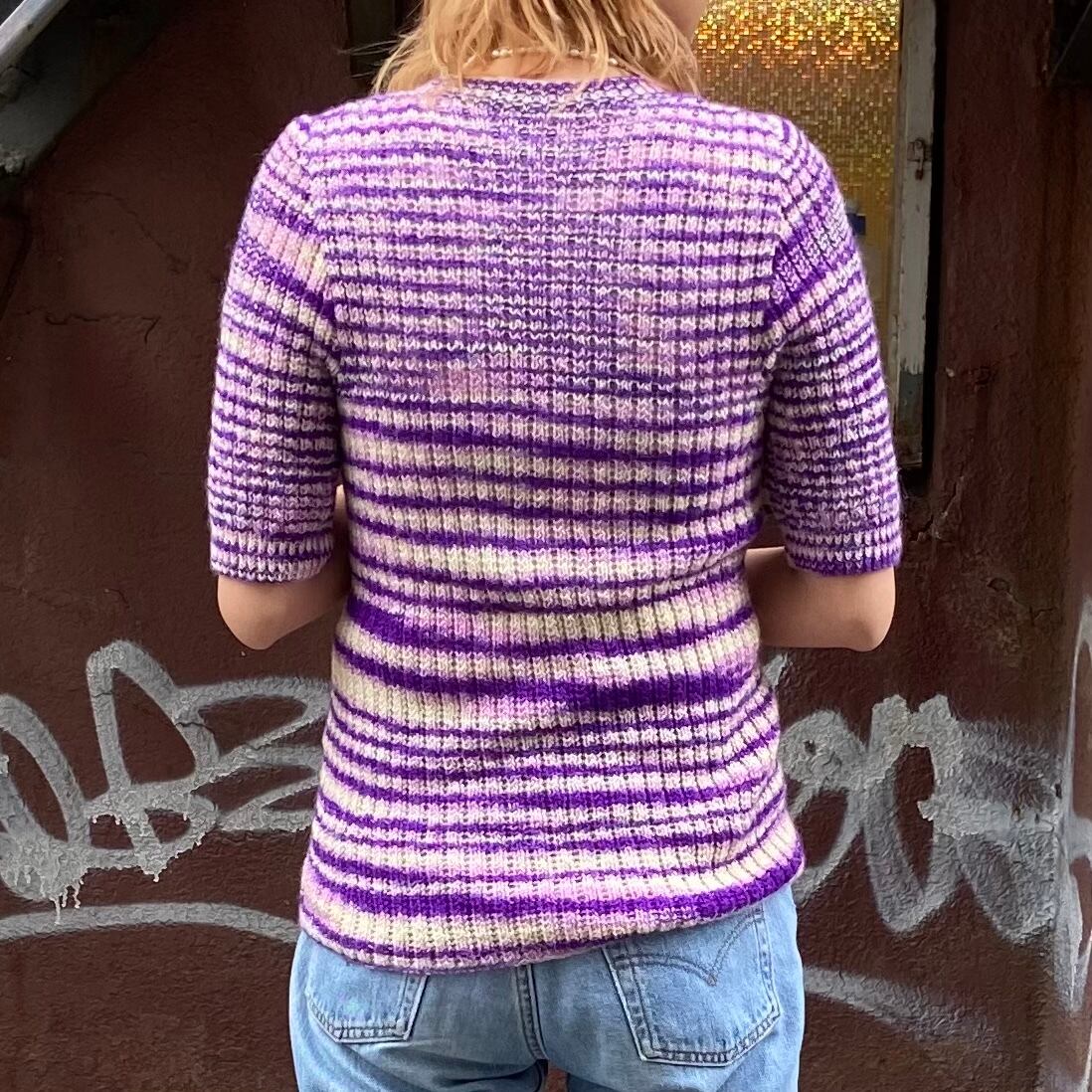 HALF SLIEVE ACRYLIC KNIT / BORDER PURPLE