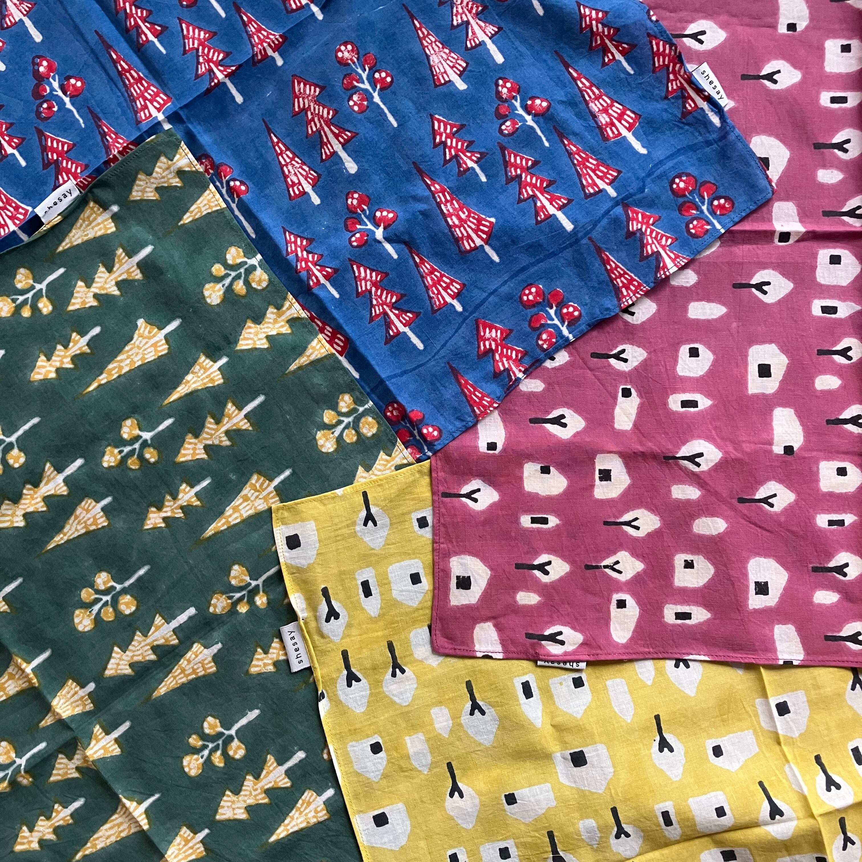 shesay ブロックプリントハンカチ おうち柄 北欧の森