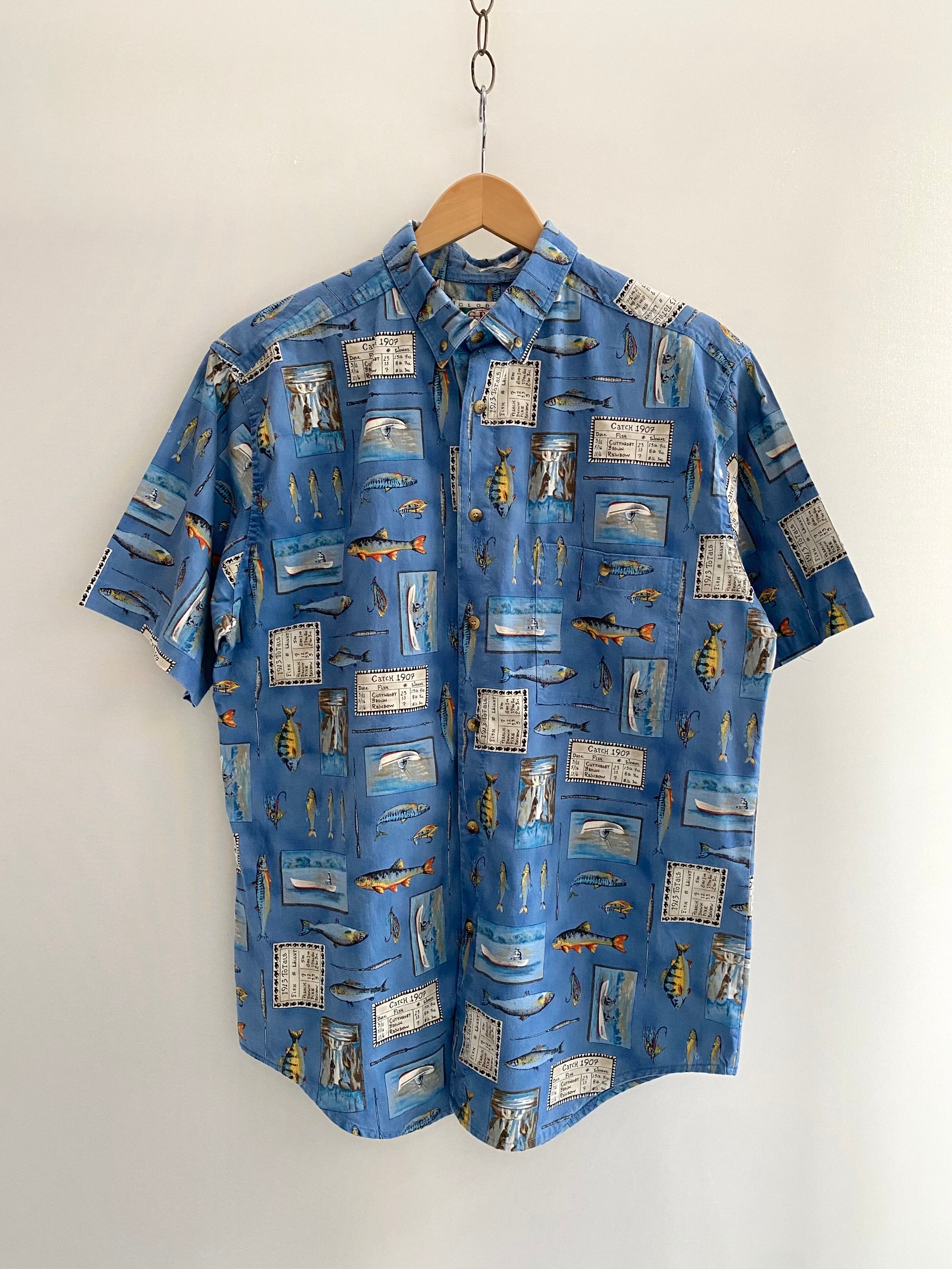 G.P.S. FISH PATTERNED S/S SHIRT Made in USA