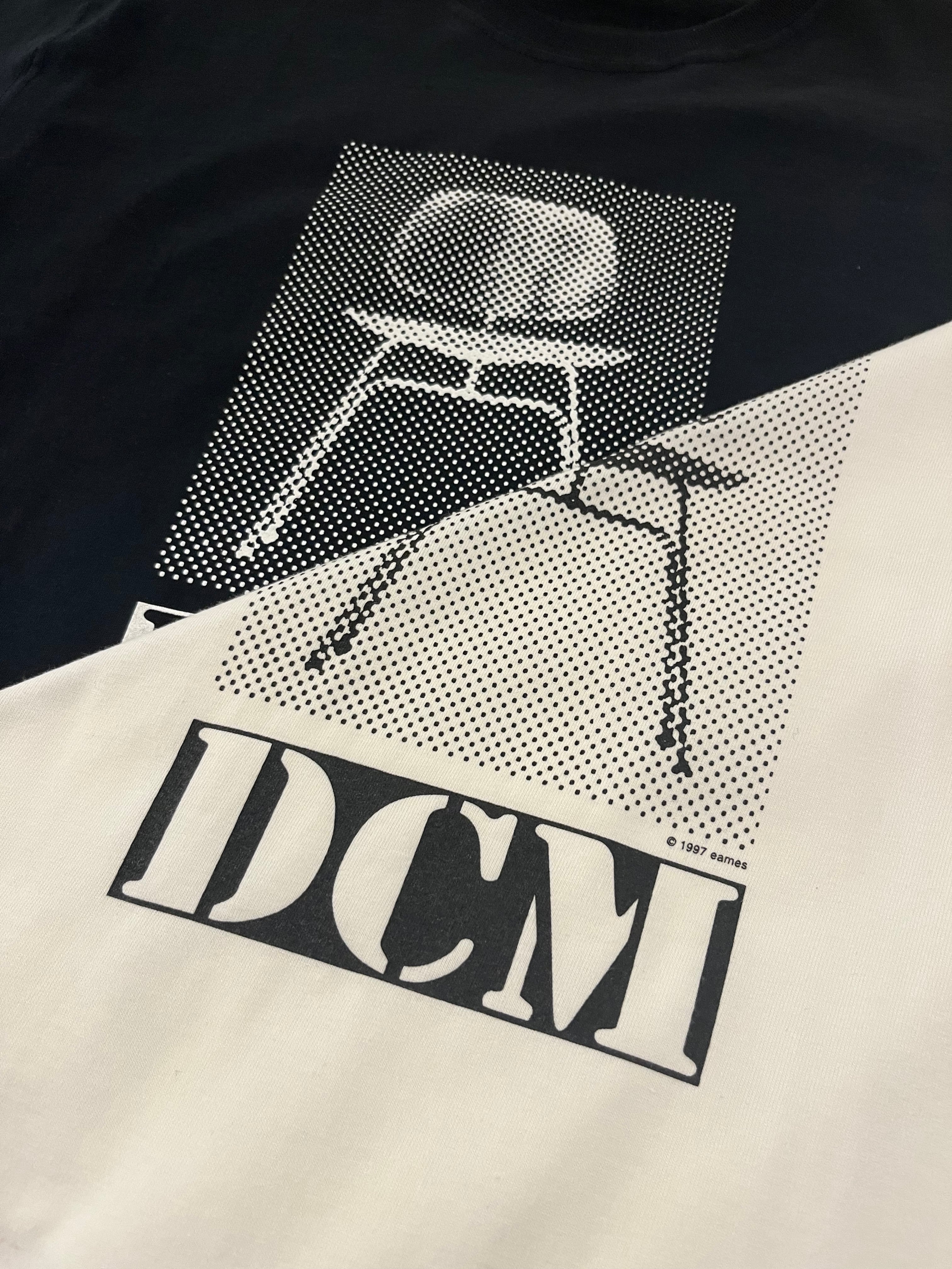 こちらのTシャツは90年代にeames officeが販促用に製造したと思われるプロモーションTシャツのデッドストック(未使用品)となります。前面にはデザイナーズチェアの名作に数えられるDining Char Metalがドット柄で表現されており、背面上部にはeames officeとロゴがプリントされております。