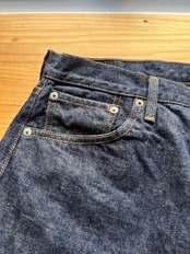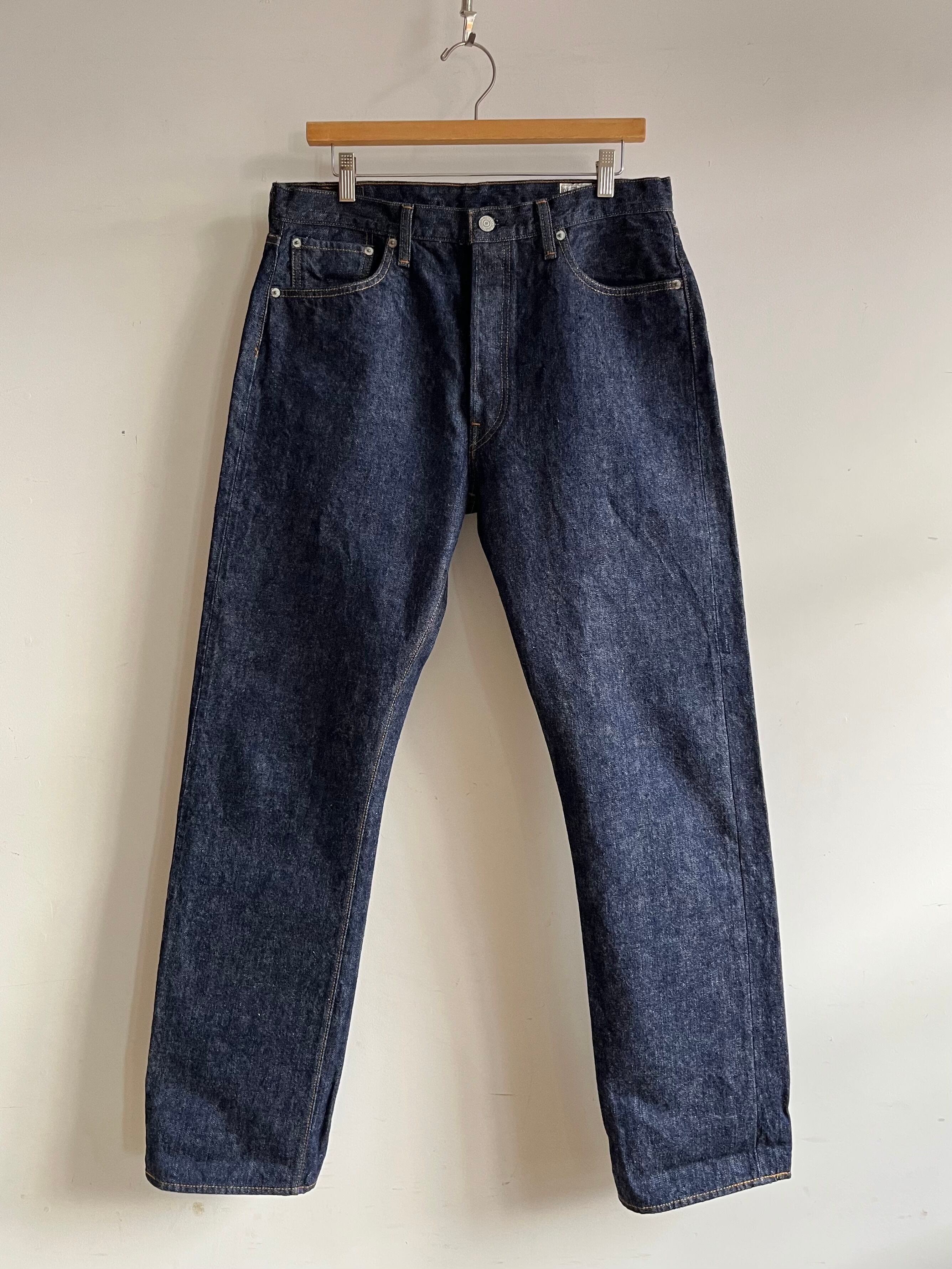 1966年頃のアメリカ製デニムをベースにデザインされたストレートデニム。13.3ozのオリジナルセルビッジデニム生地を使用、ワンウォッシュされたザラつきのある表面は定番の105とはまた違った風合いで今後の経年変化に期待が膨らみます。