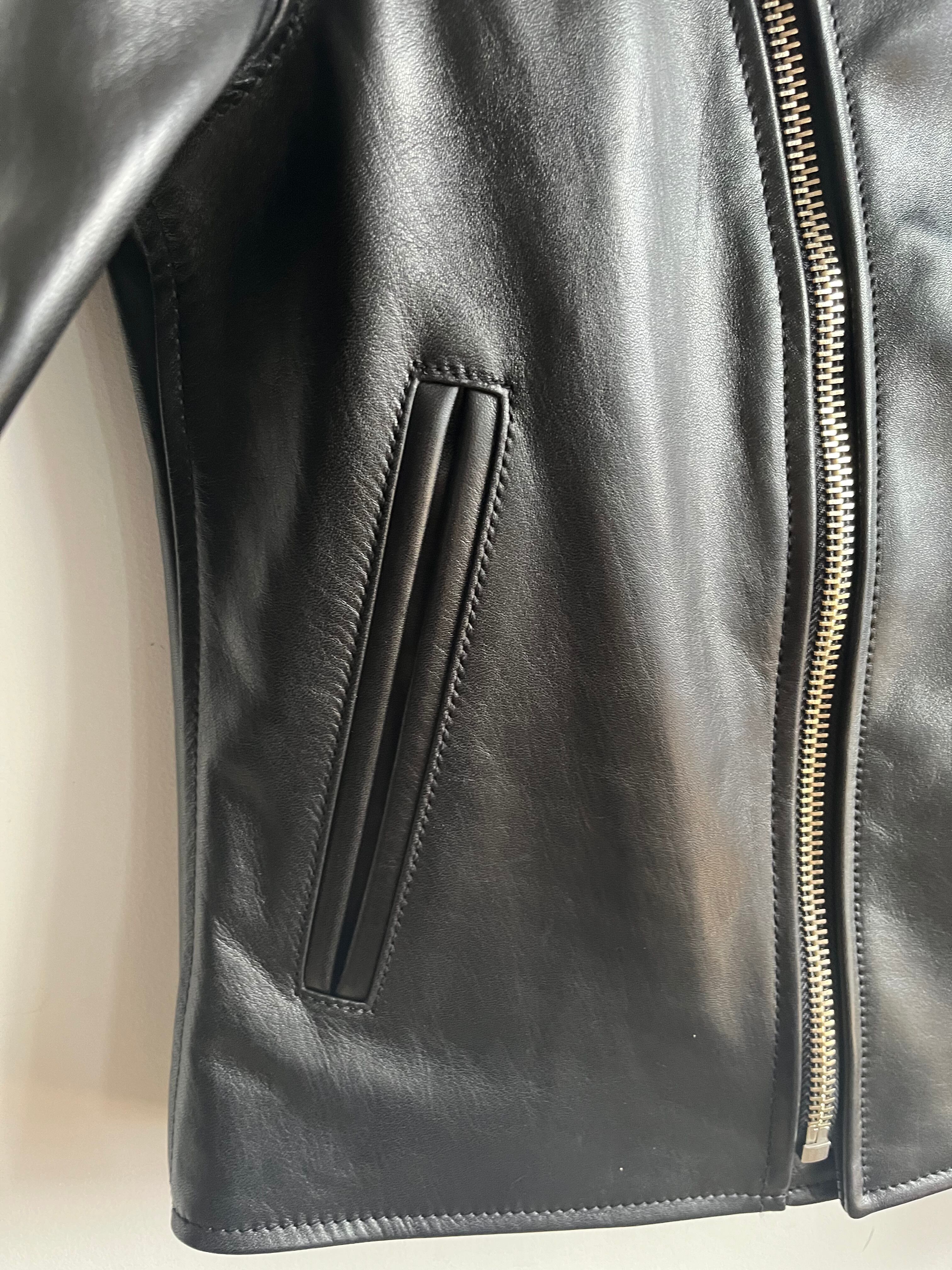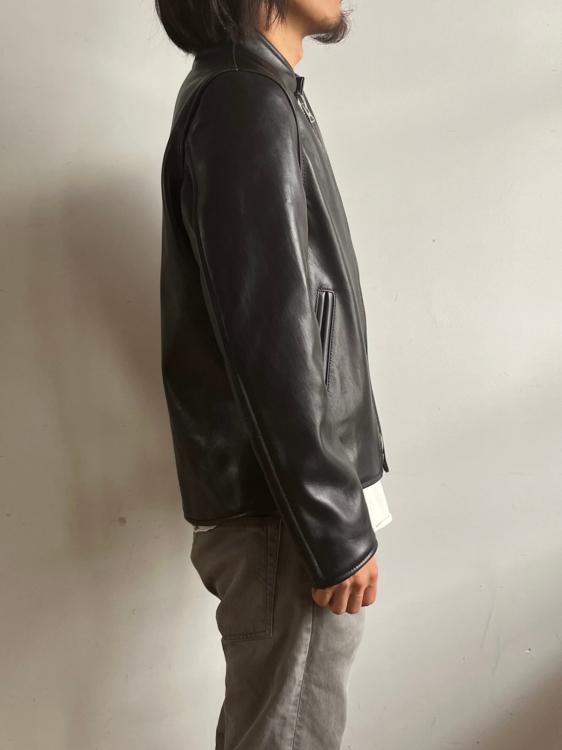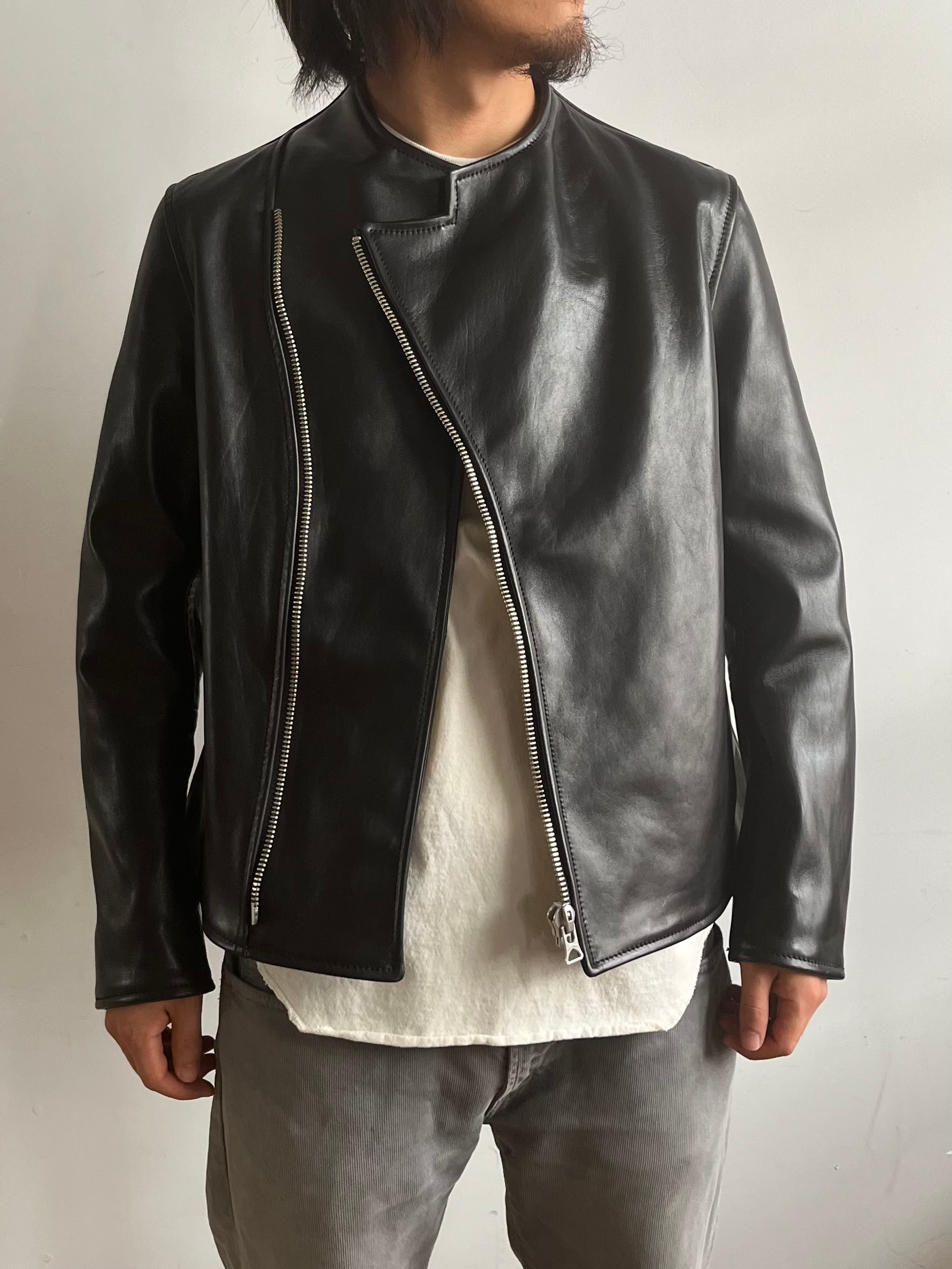 ブランドを代表する型の一つであるこのジャケットは国産のきめ細やかなホースハイド(馬革)を使用、ベジタブルタンニン鞣しで仕上げられた表面は着用毎に体に馴染んでいき革の表情も変化していく育てがいのある一品。