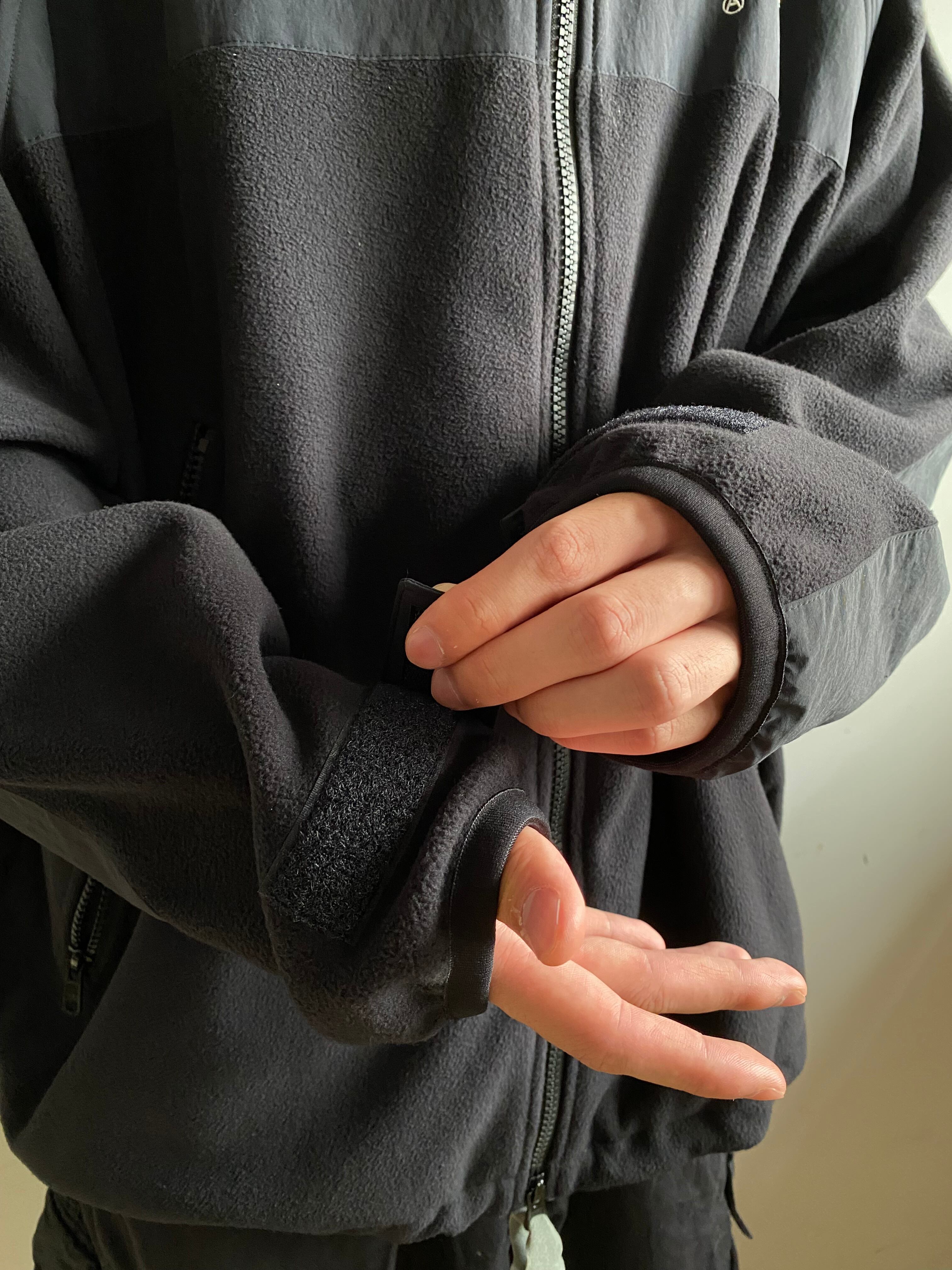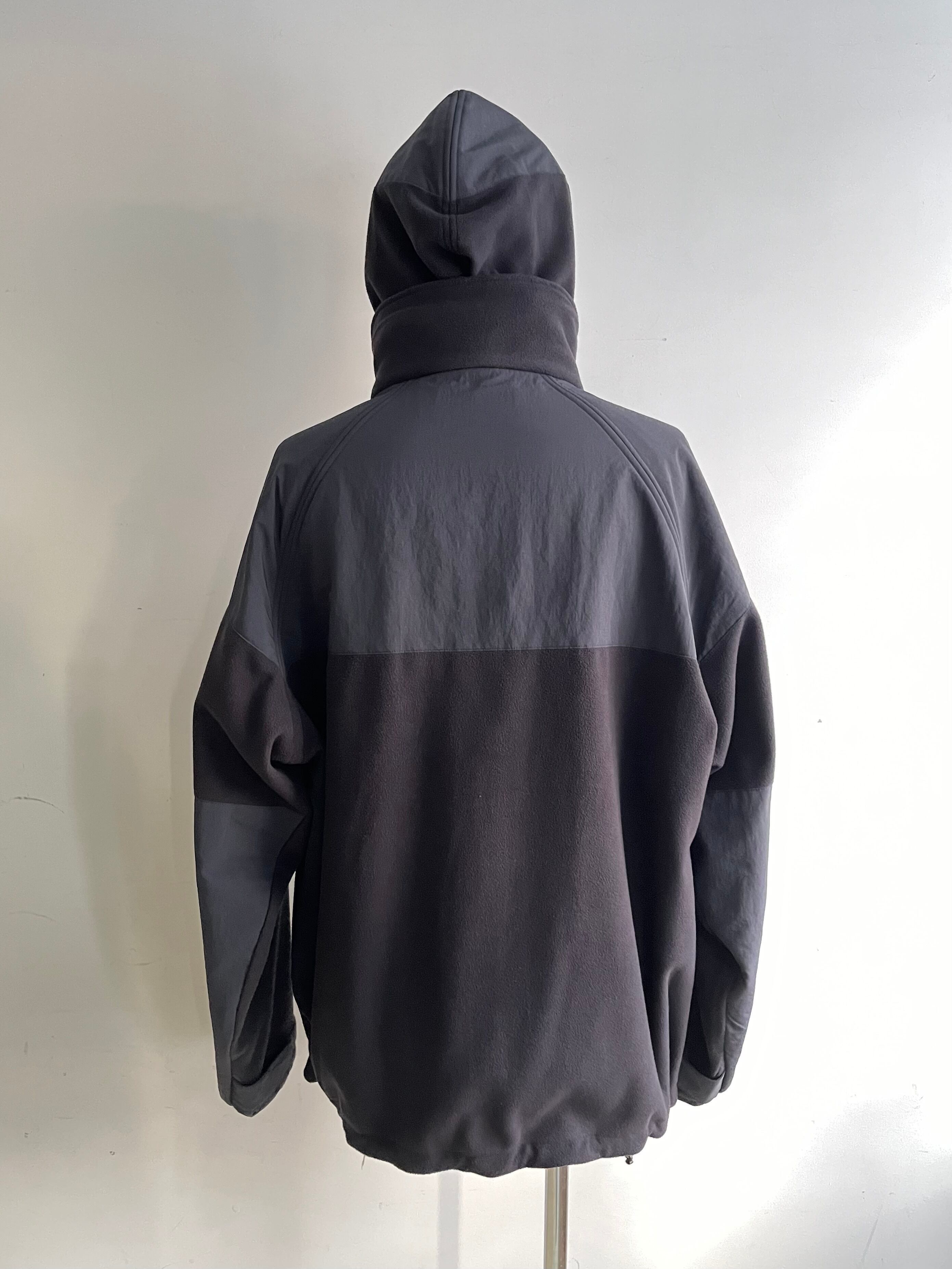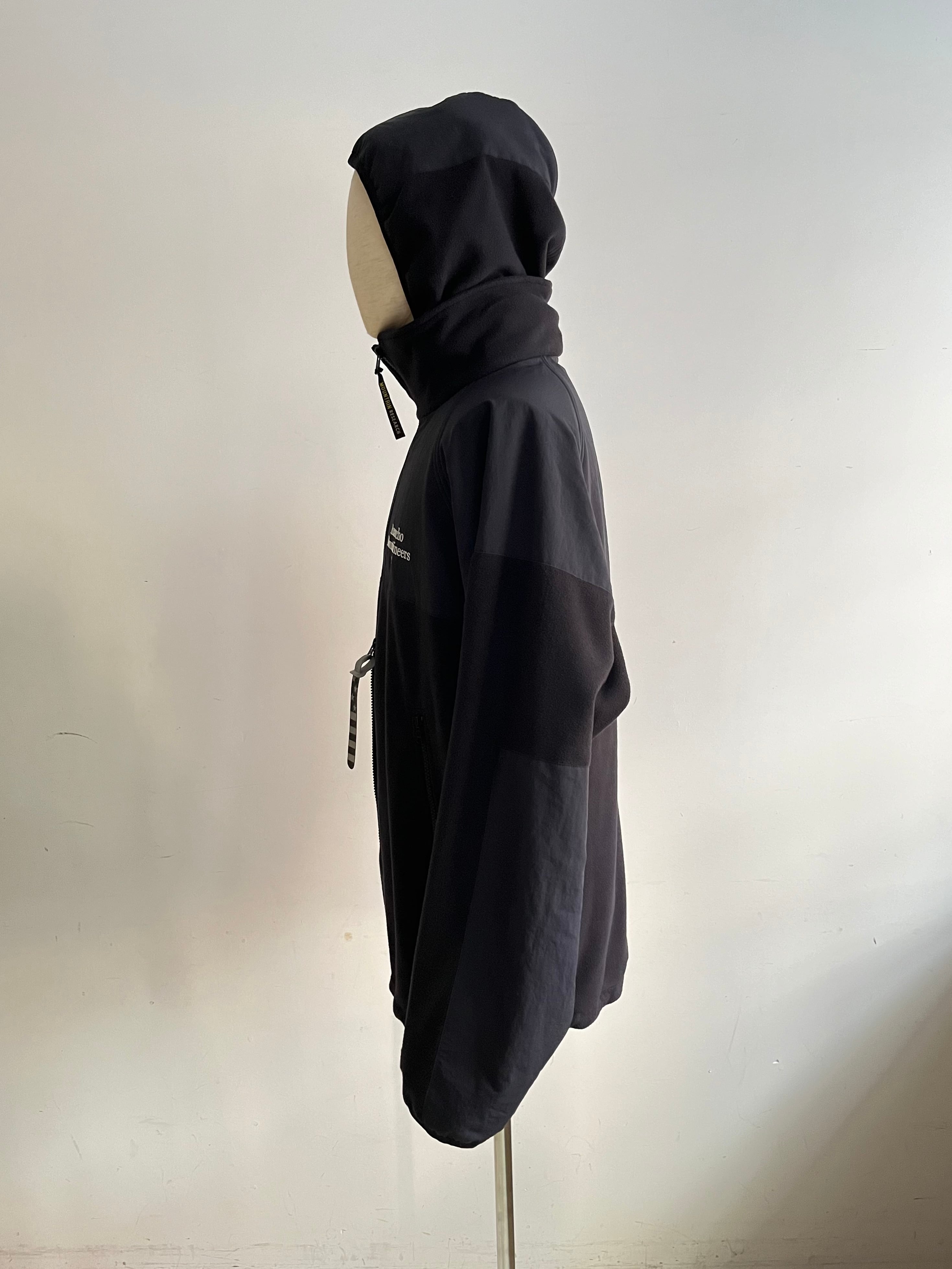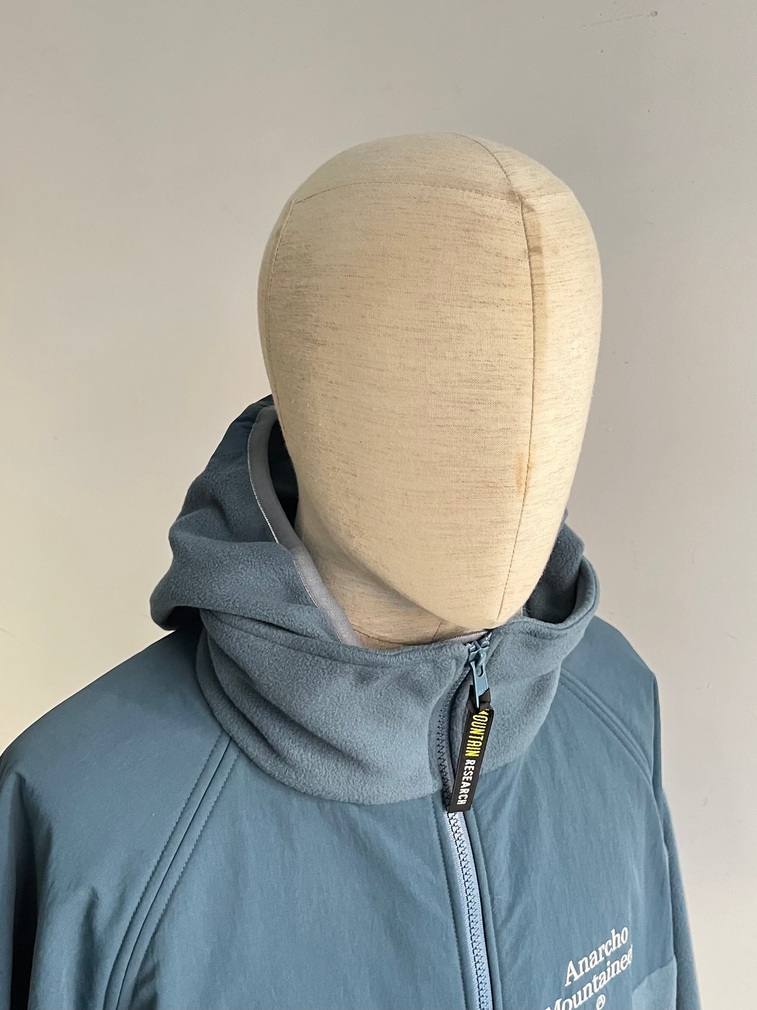 高品位なリサイクルマイクロストレッチフリースを使用したフリースジャケット。肩や肘など摩擦が生じやすい部分には耐久性のあるタスランナイロン生地を使用し耐久性を強化するなど実用性の高い一品。フードはファスナーで着脱可能、前面はダブルファスナー、裾のドローコードなど充実した仕様で着方のバリエーションも豊富です。左胸にはブランドアイコンの一つ「Anarcho Mountaineer」の刺繍が入ります。