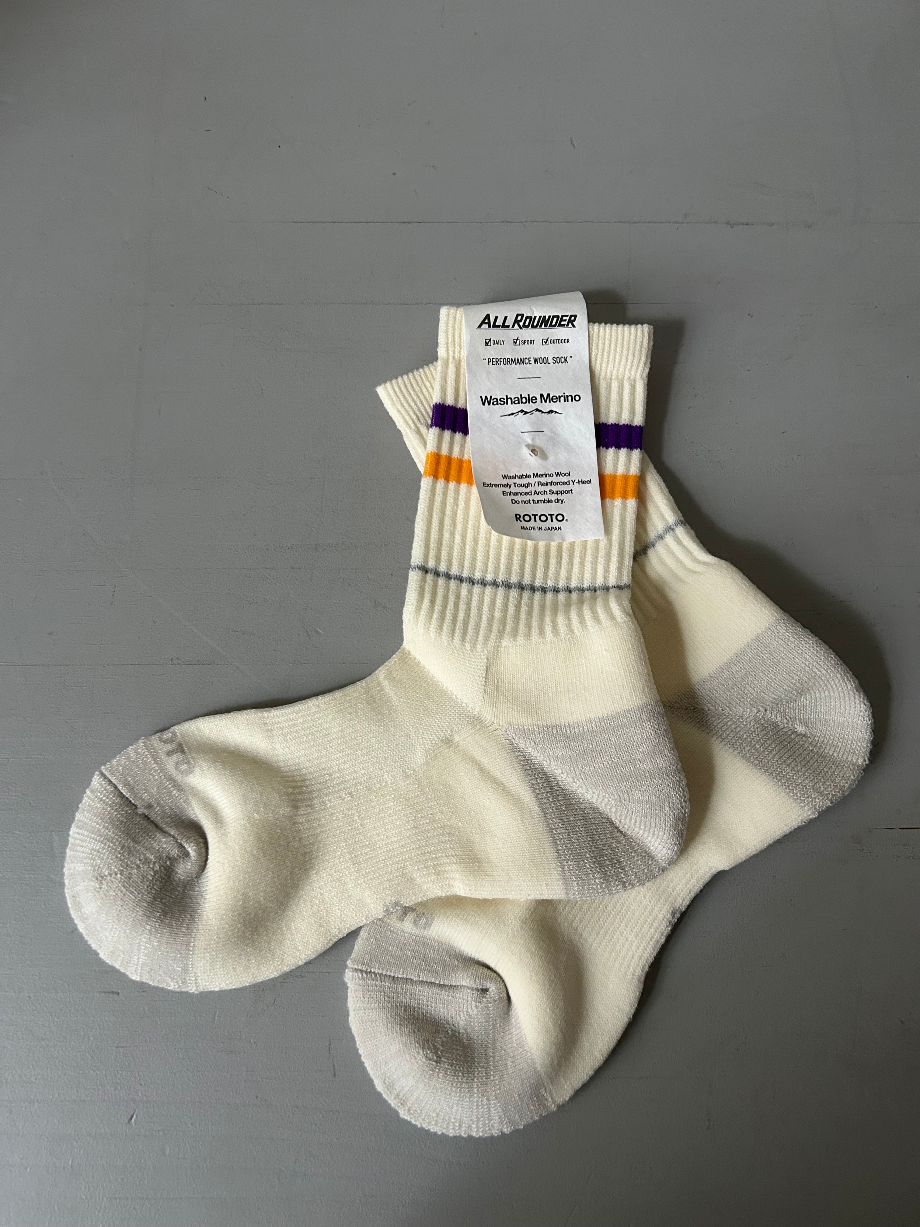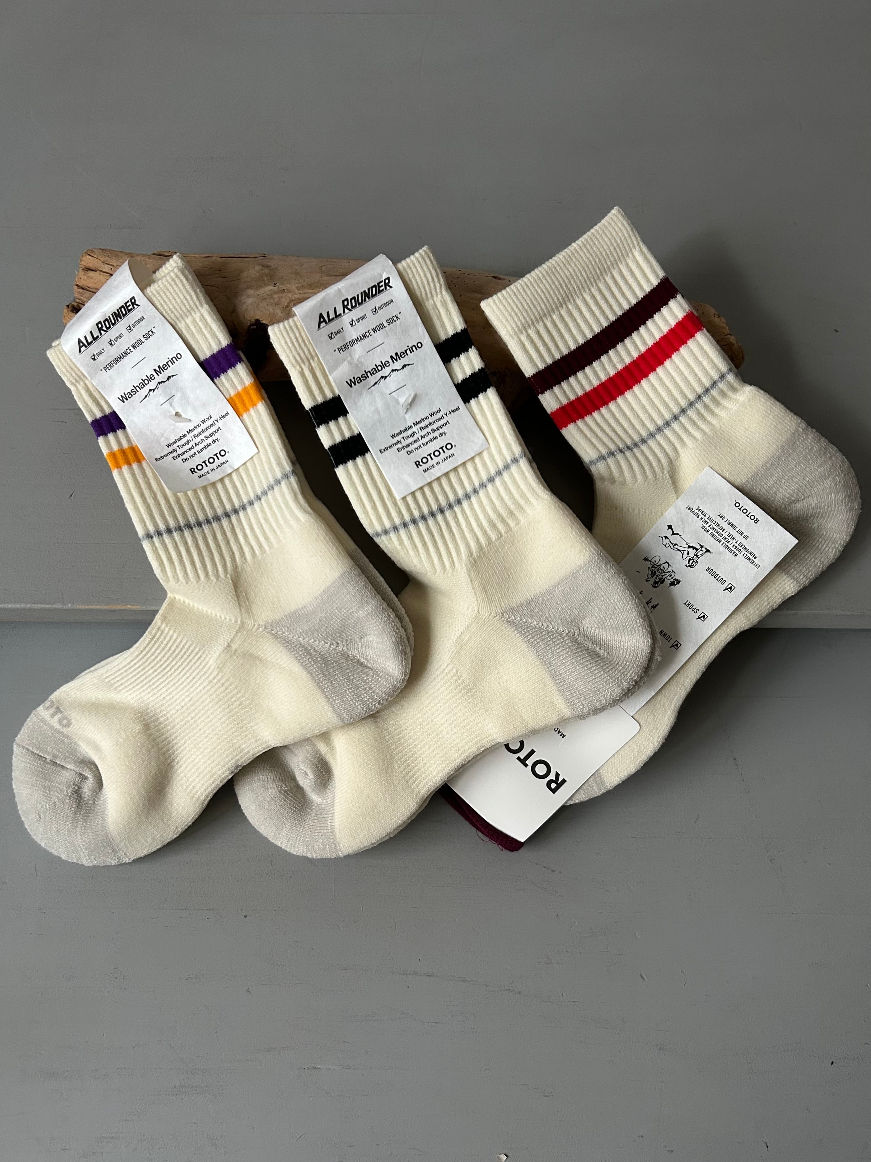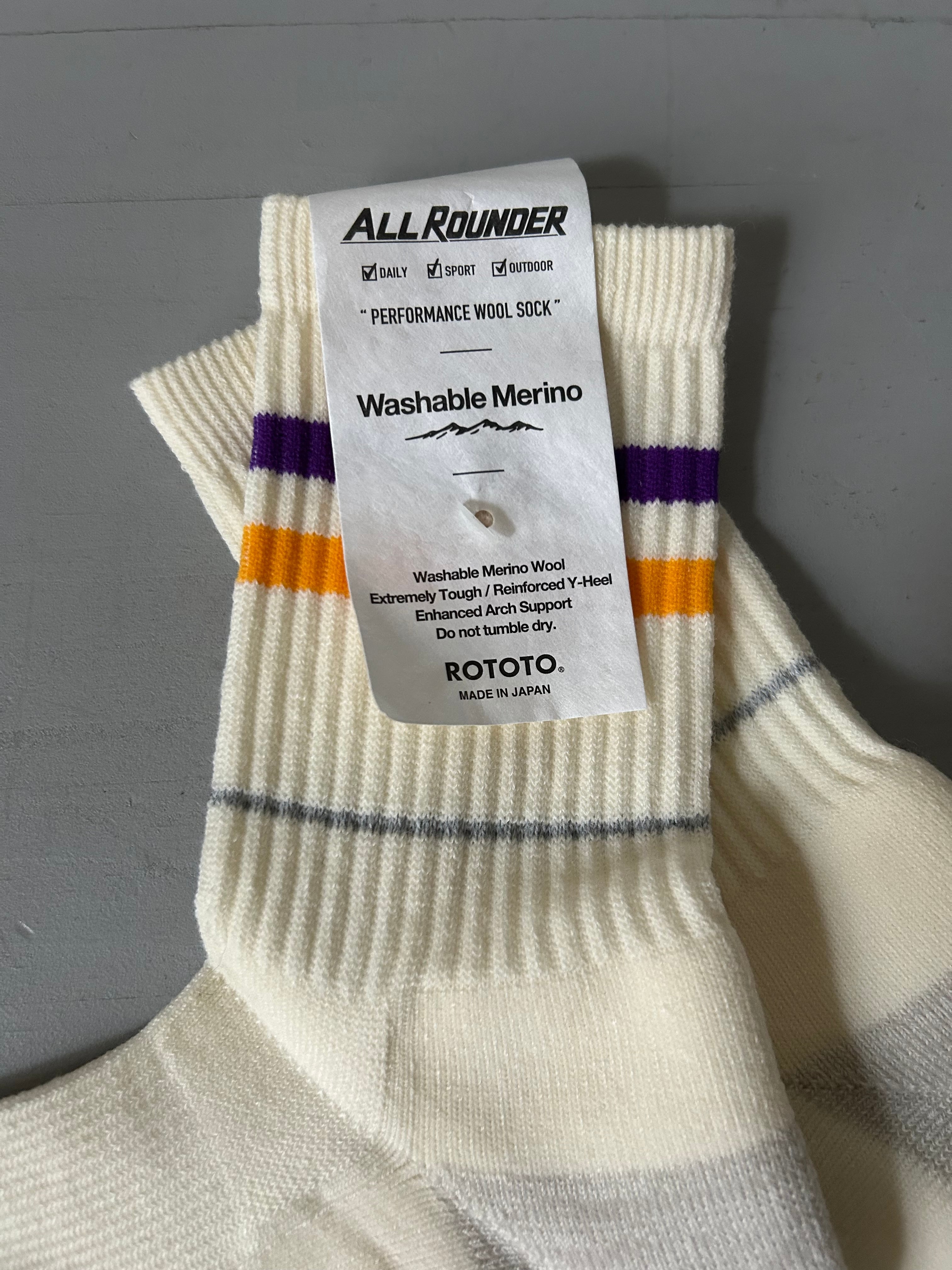 "ROTOTO" ALLROUNDER 2 STRIPE MERINO CREW SOCKS*