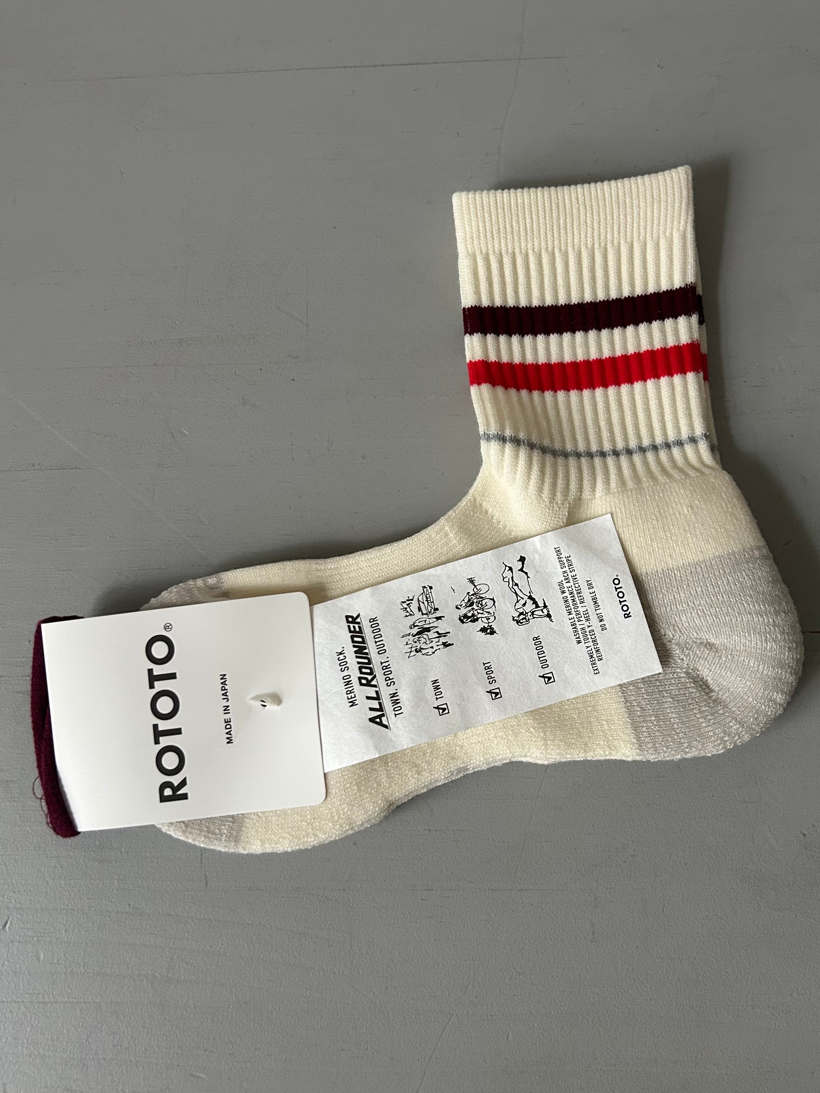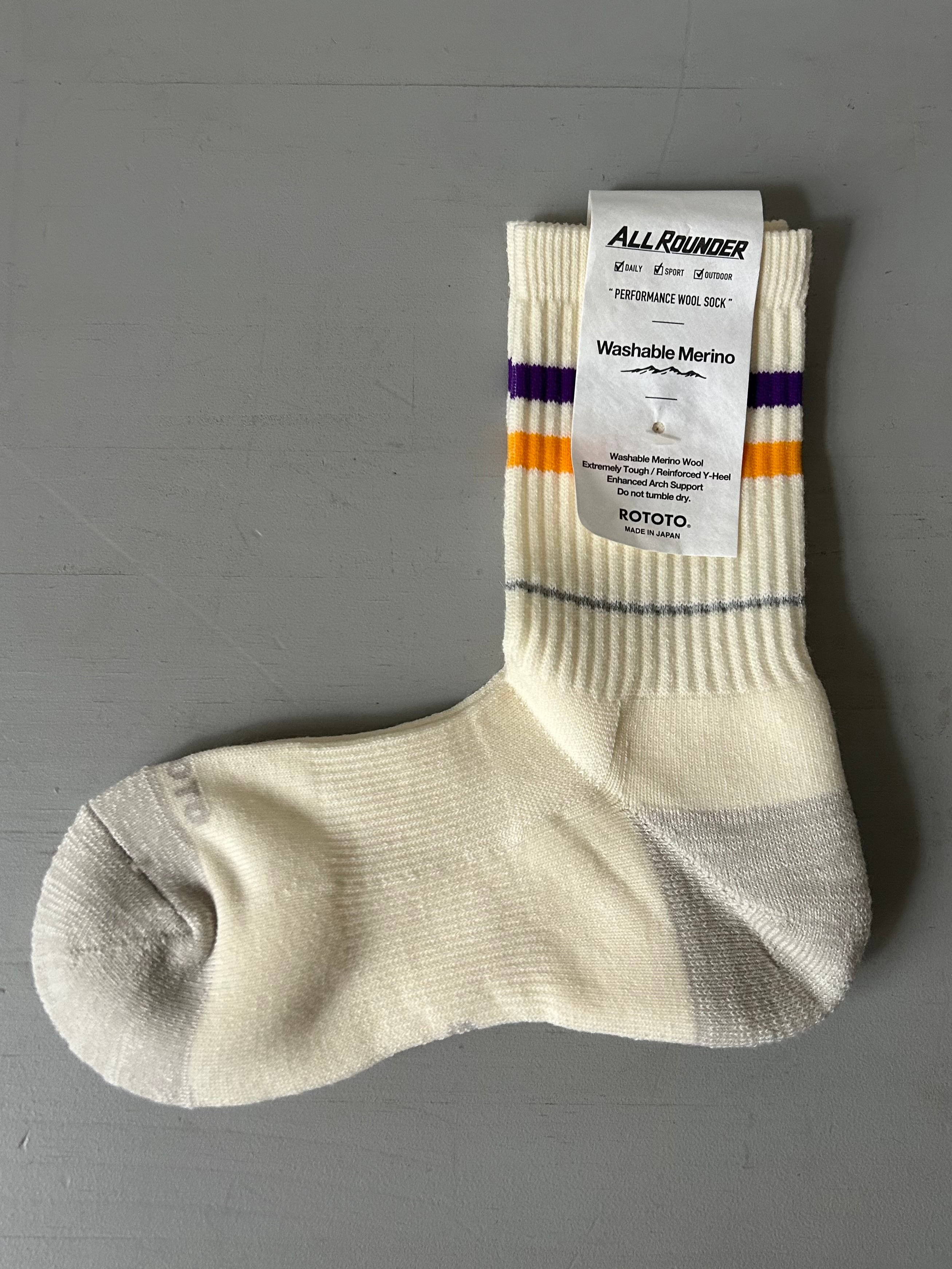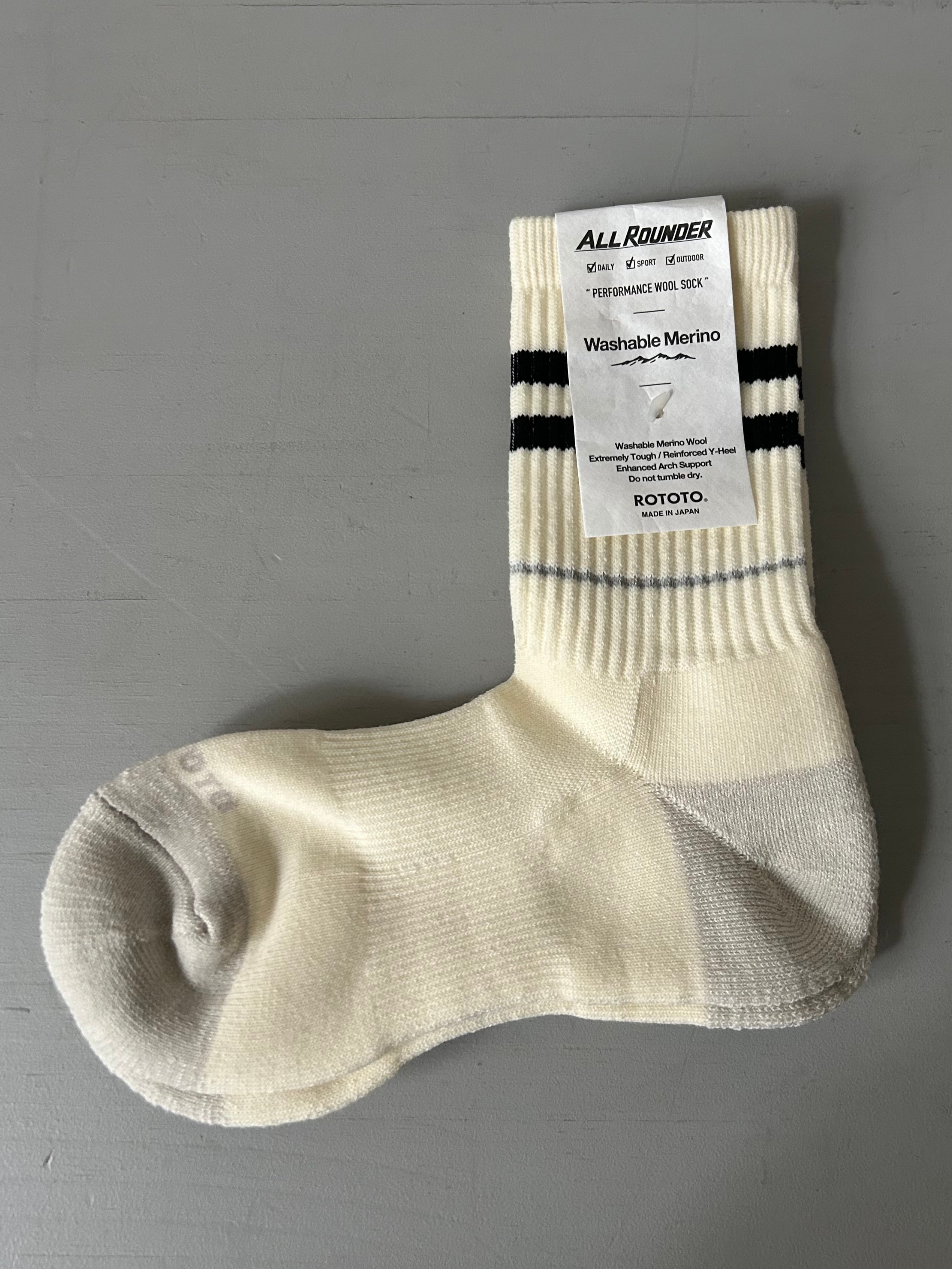 "ROTOTO" ALLROUNDER 2 STRIPE MERINO CREW SOCKS*