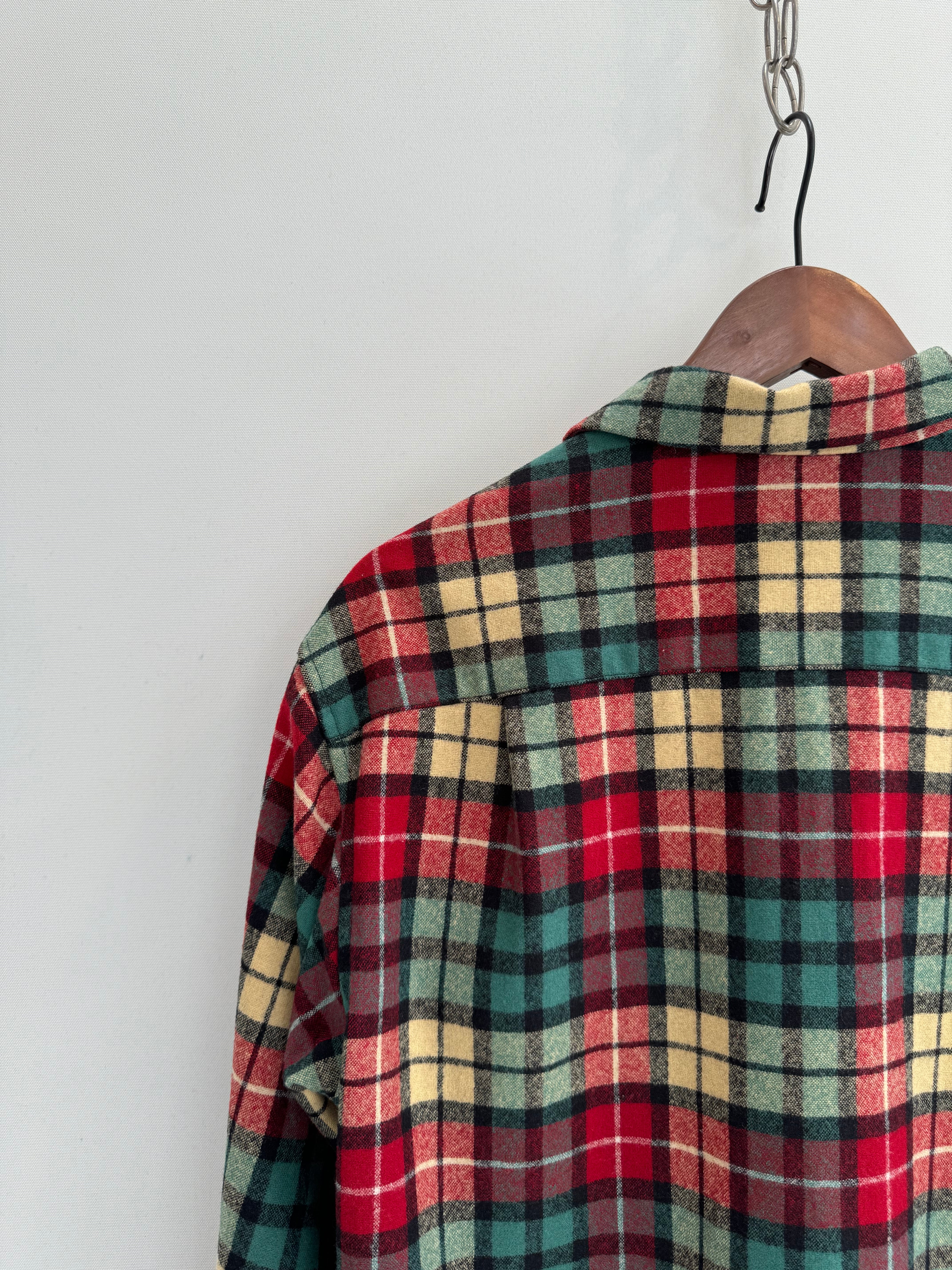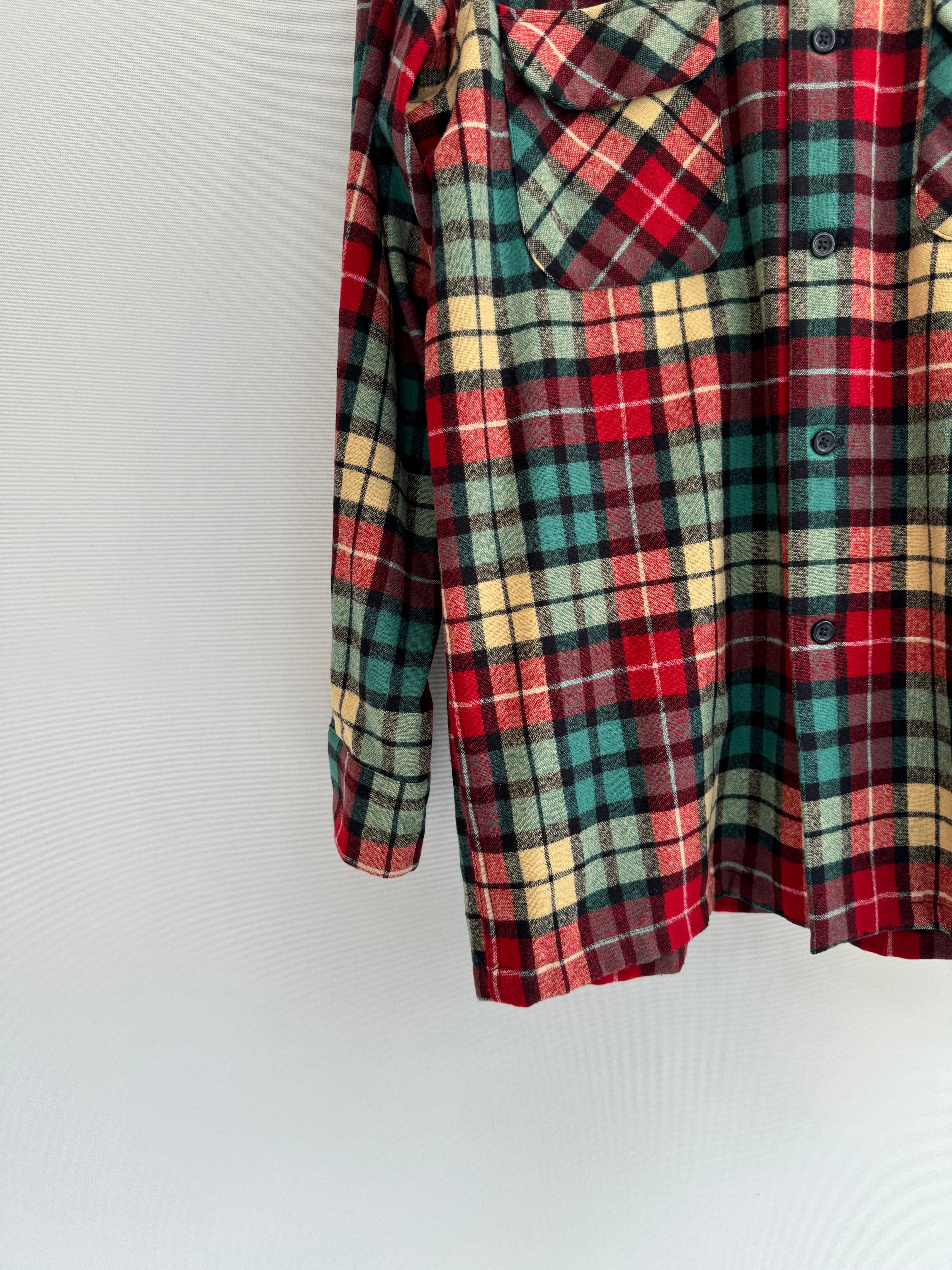 カラフルな色味が特徴的なプレイド柄オープンカラーシャツ。