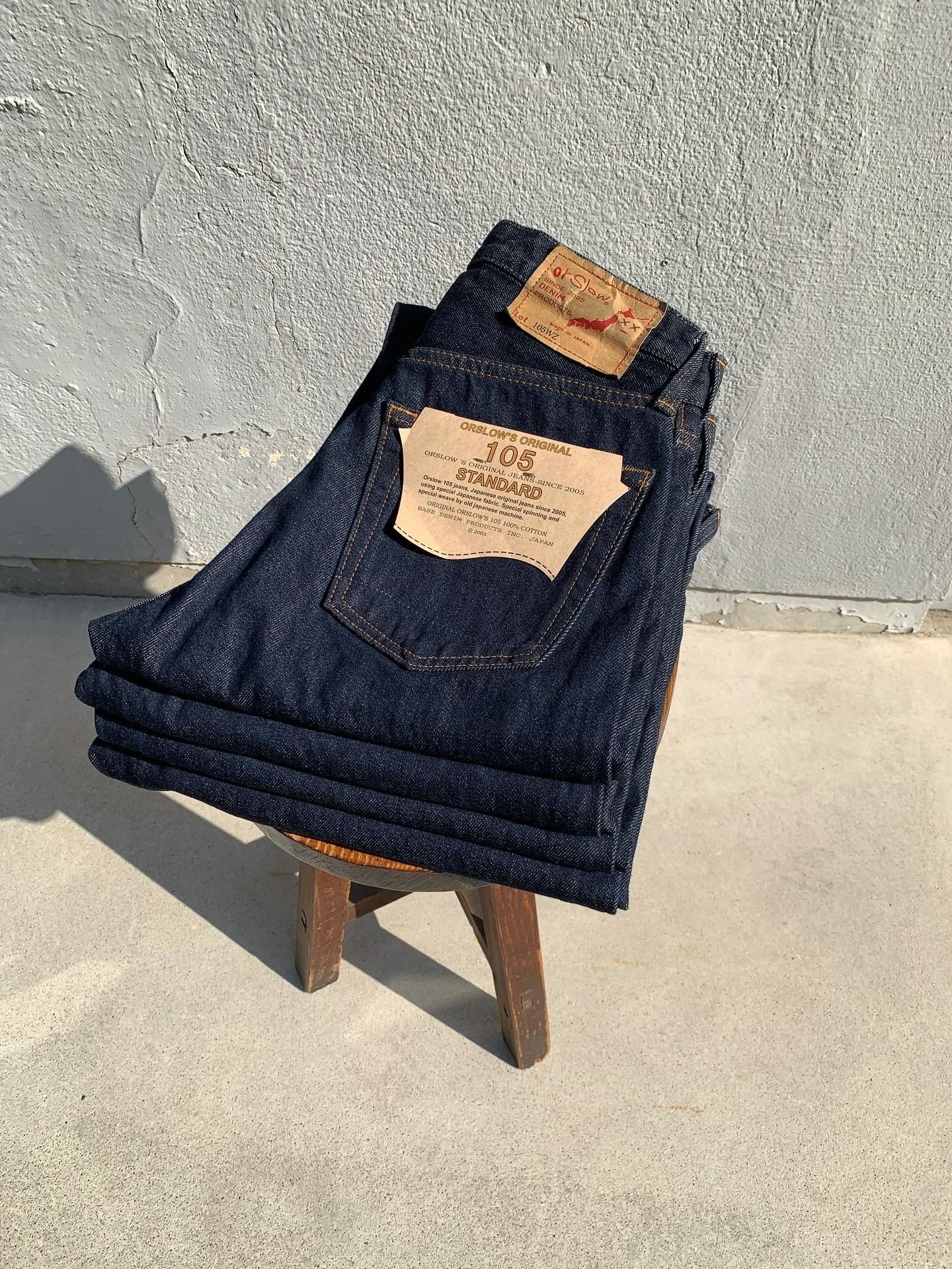 90年代のアメリカ製ジーンズを参考に、紡績から縫製まで当時のディテールを細かく再現した"105 90's"。