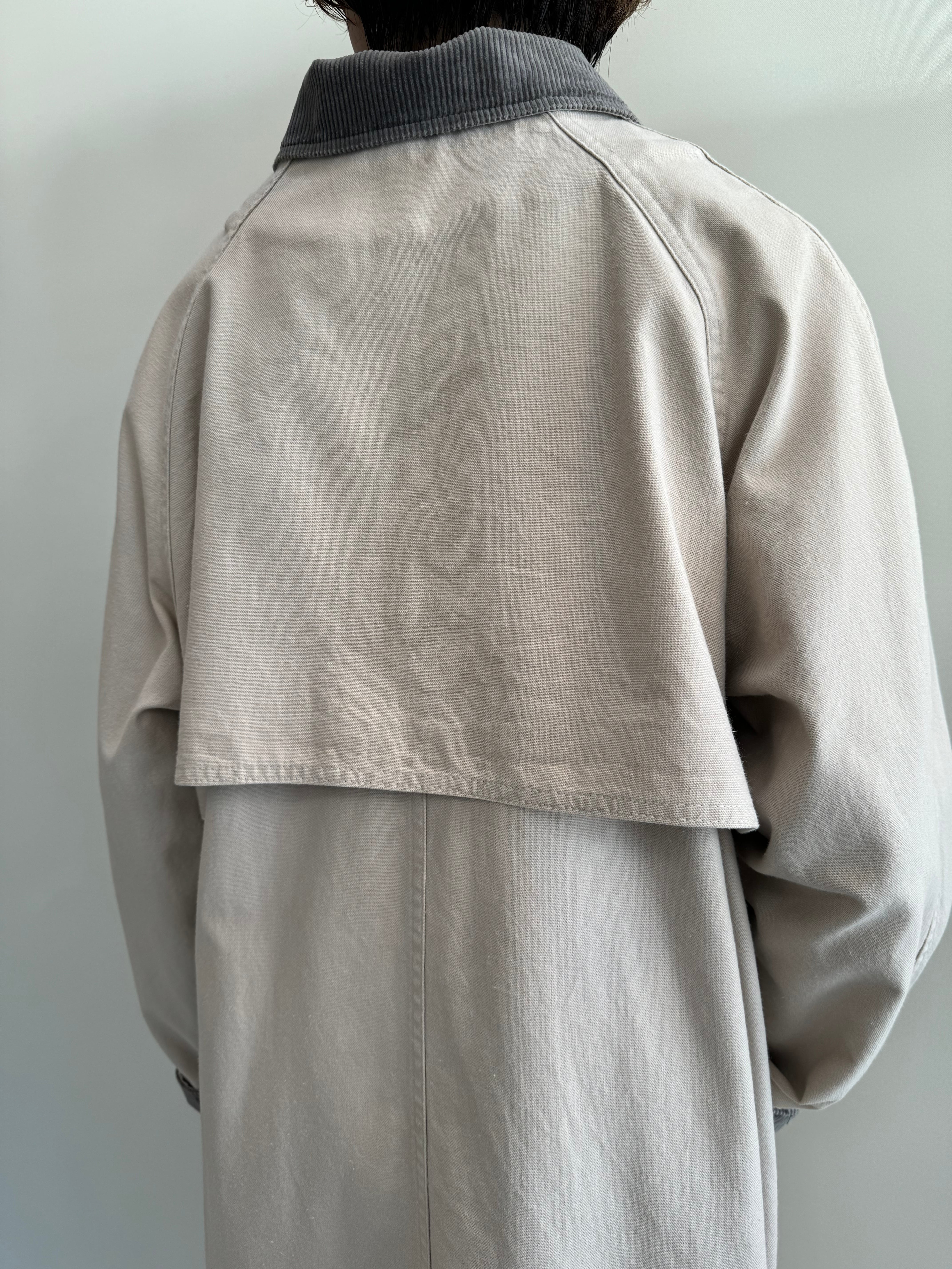 襟やリブのコーデュロイとボディーの色合いが最高すぎるダスターコート。