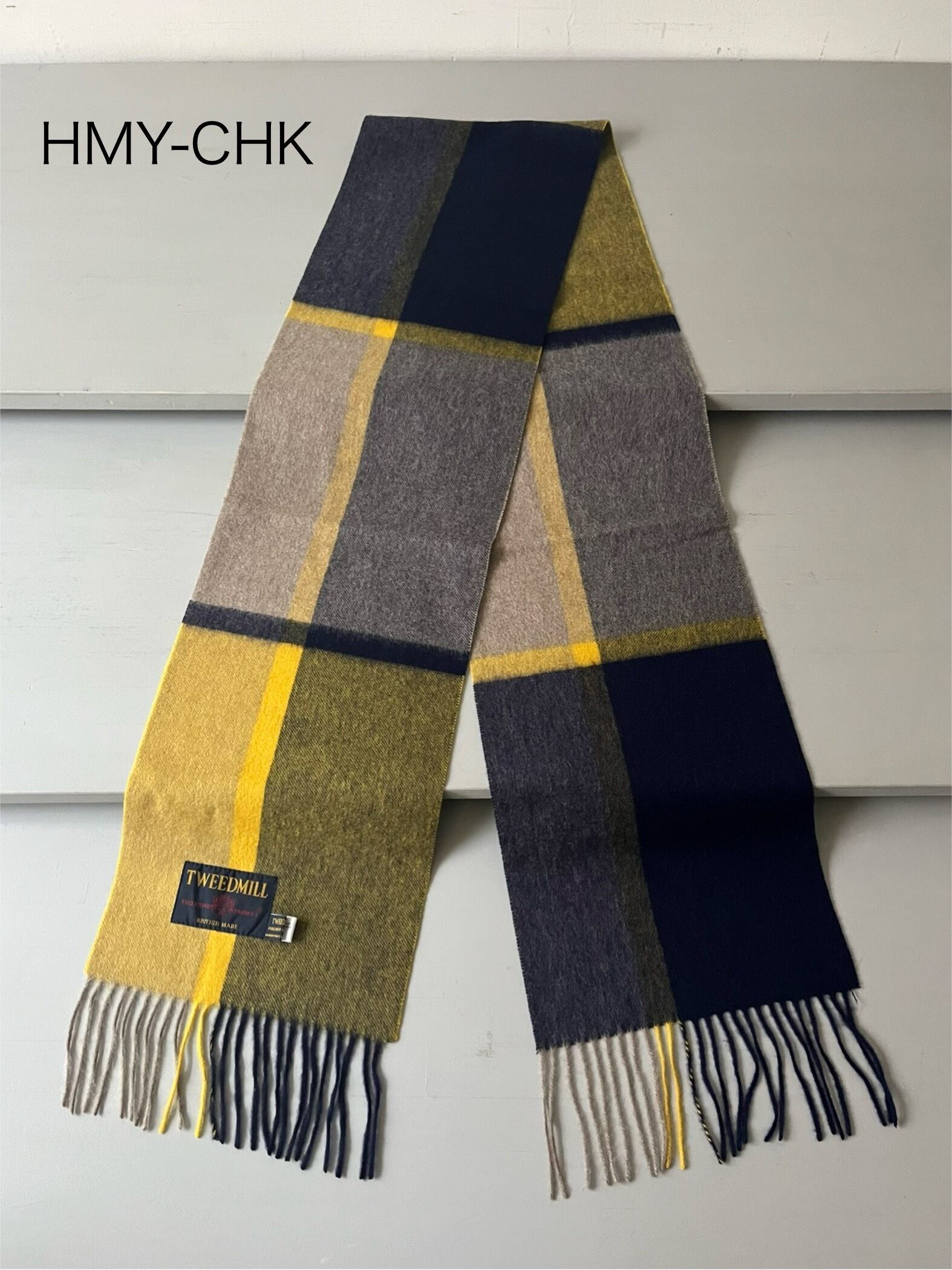 肌触り柔らかなラムウールを100%使用した英国製のウールストール。サイズは小ぶりで使いやすい25cm x 190cm。贈り物にも是非!