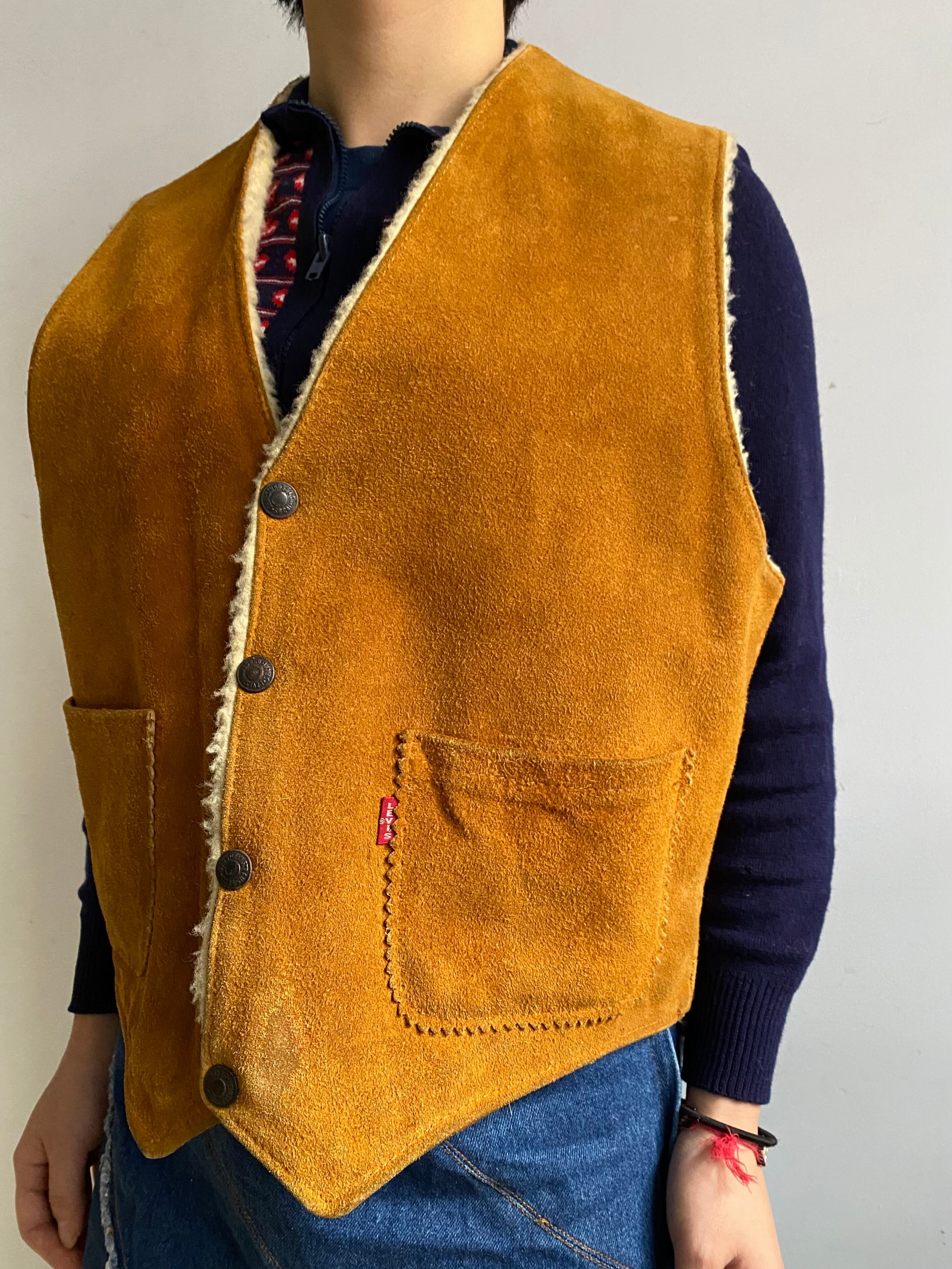 50s VINTAGE LEVI'S SHORTHORN REVERSIBLE SUEDE BOA VEST