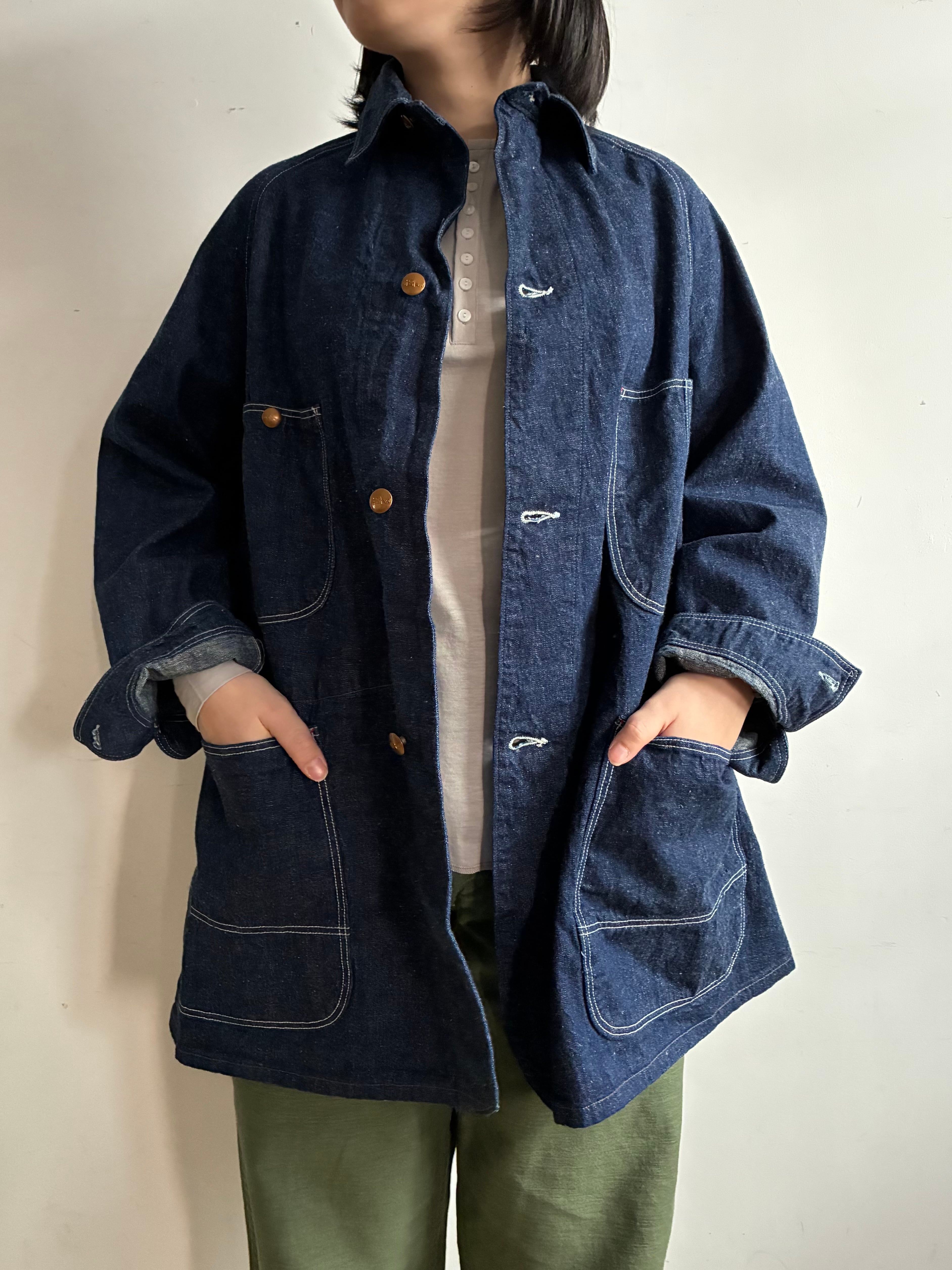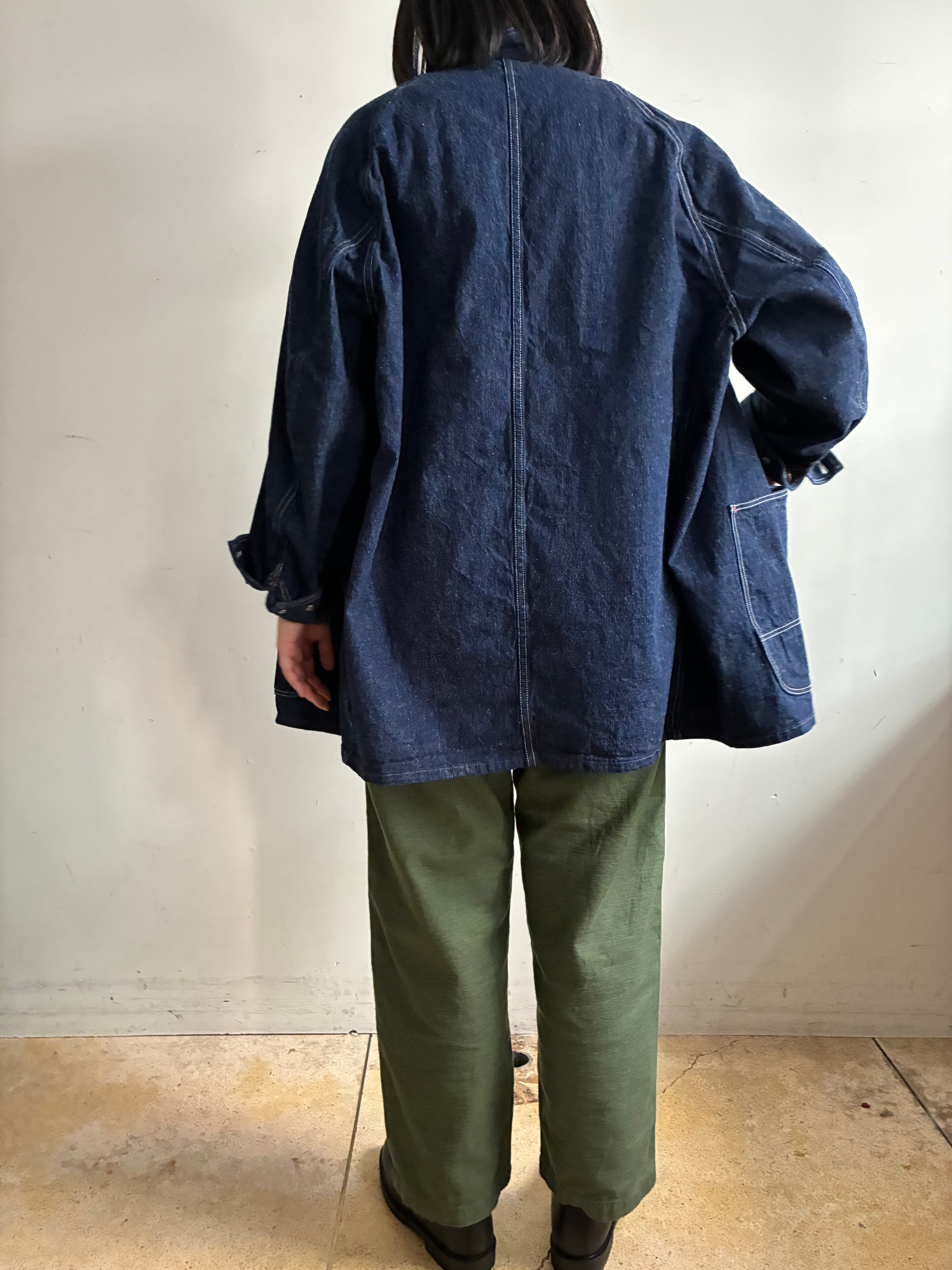 orSlow定番の50sカバーオールを女性が着用しやすいようアレンジしたルーズフィットカバーオール。こちらは1930年代の物をベースに作られています。