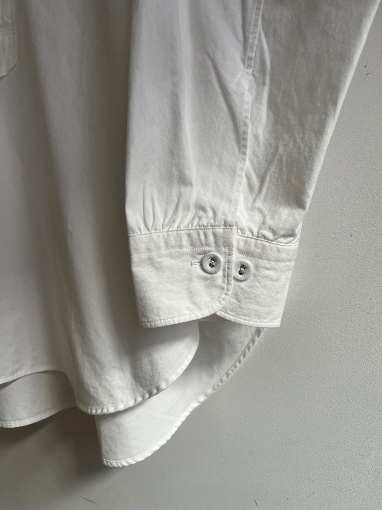 新型のプルオーバータイプのシャツ、胸元からに広がった丈が長めのAラインシルエット、後ろヨーク下のギャザーなどなどヨーロッパ古着を感じさせる一着。落ち綿生地の経年変化で更に雰囲気に磨きがかかりそうです。
